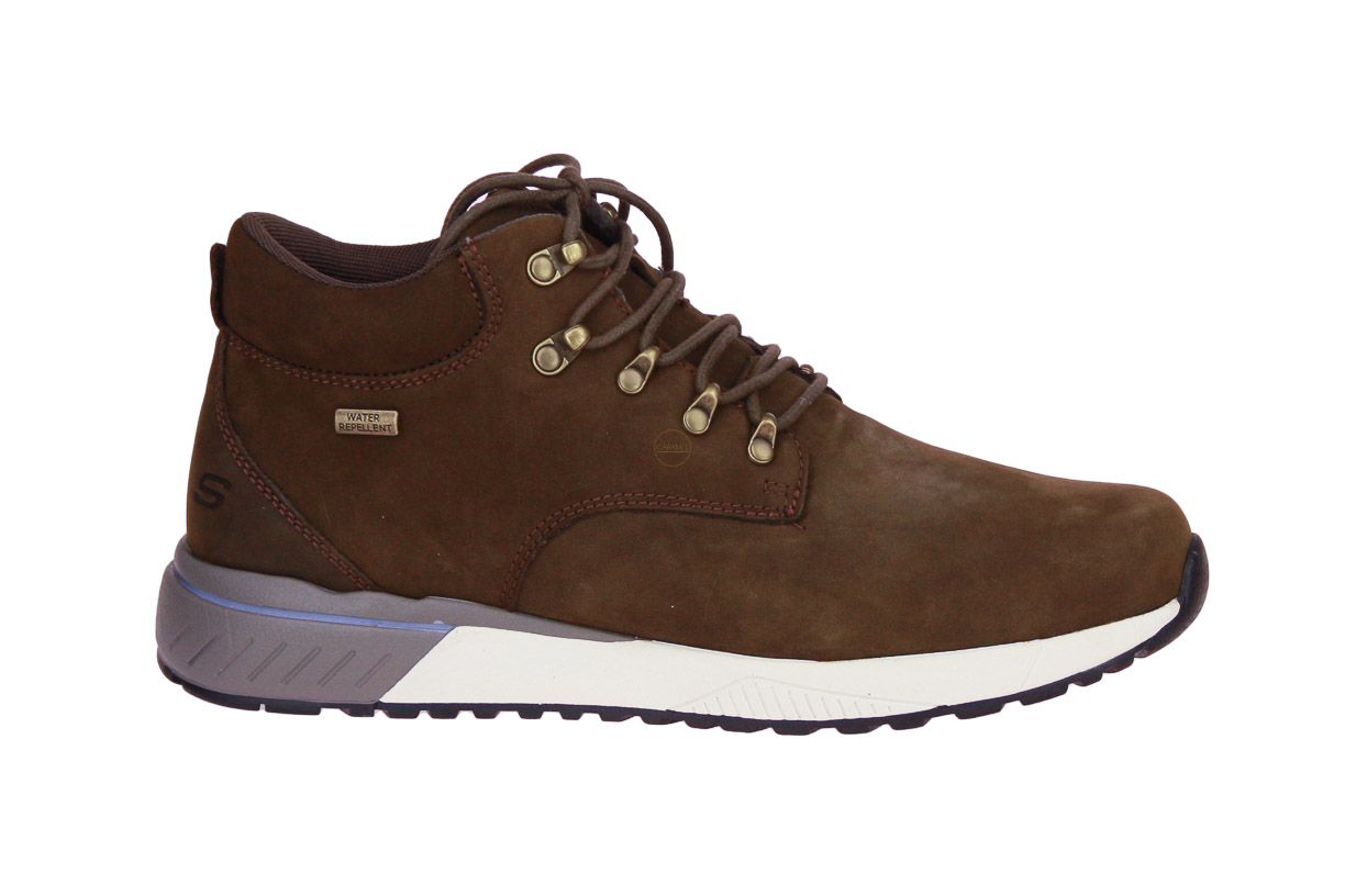Taupe gevet lederen herenschoen van het merk Skechers.