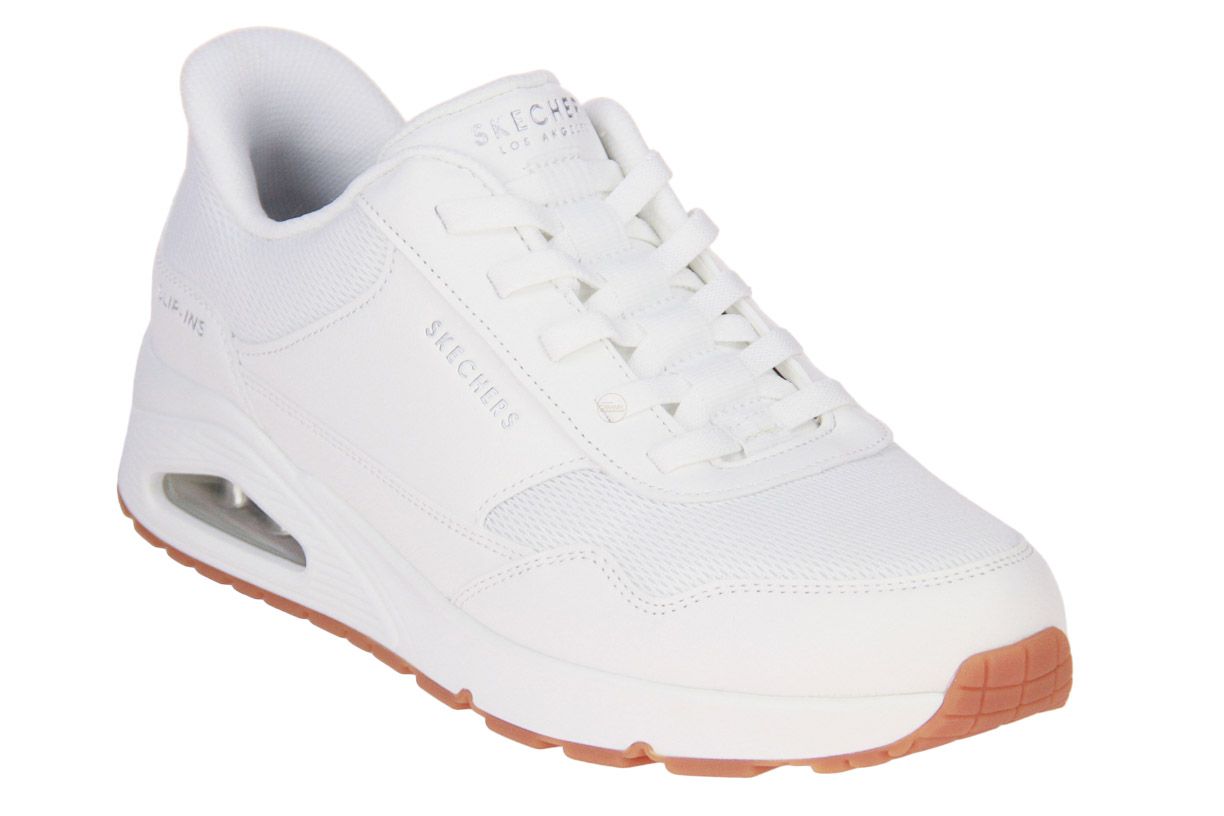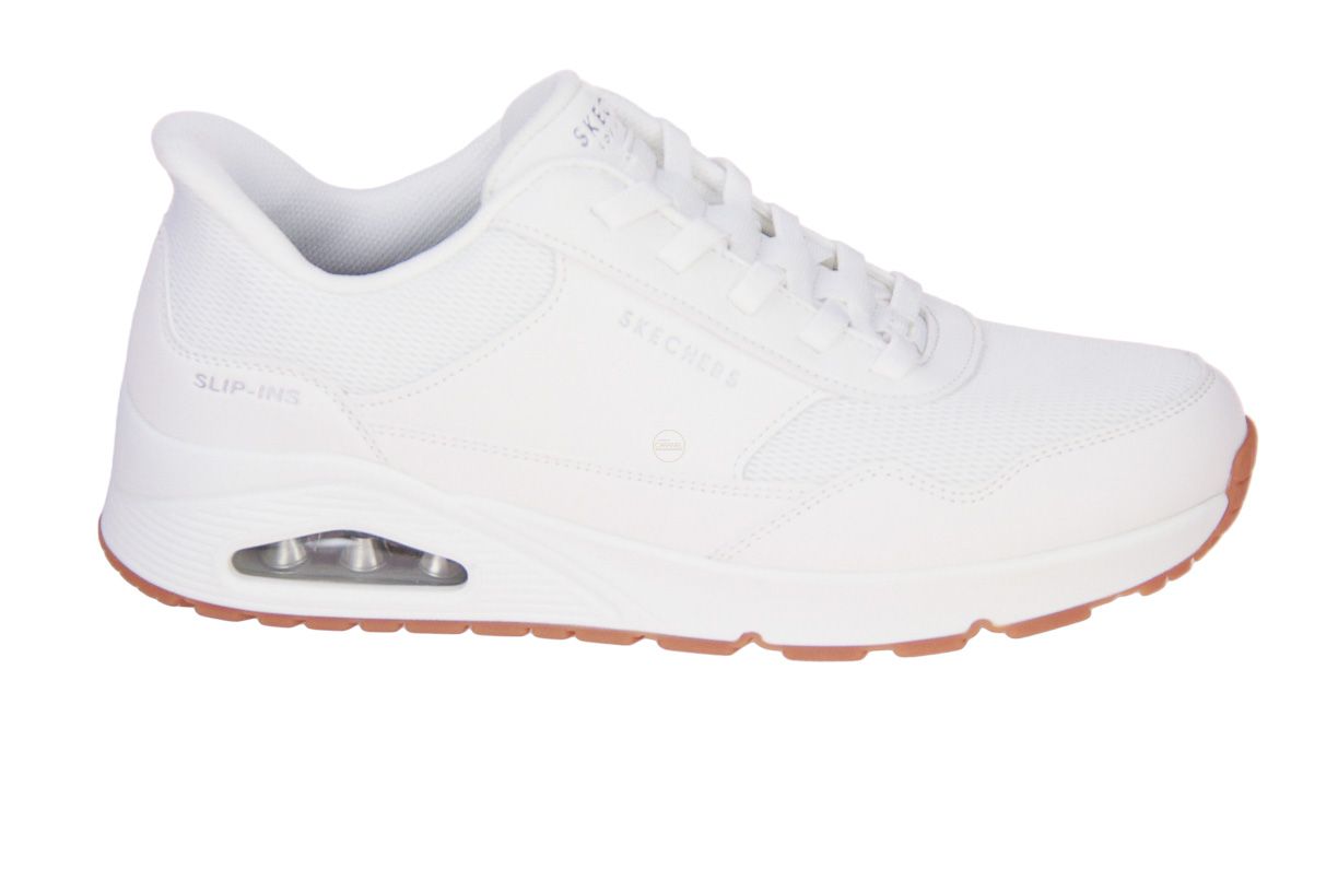 Deze wit synthetisch lederen herensneaker is van het merk Skechers.