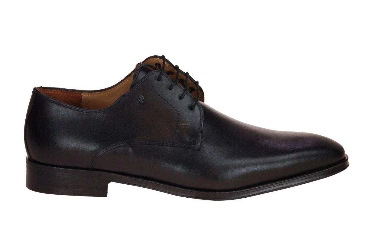 Deze zwart geklede lederen herenschoen is van het merk Van Bommel.