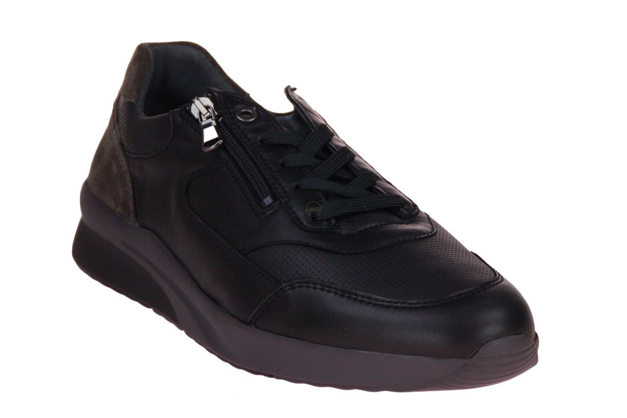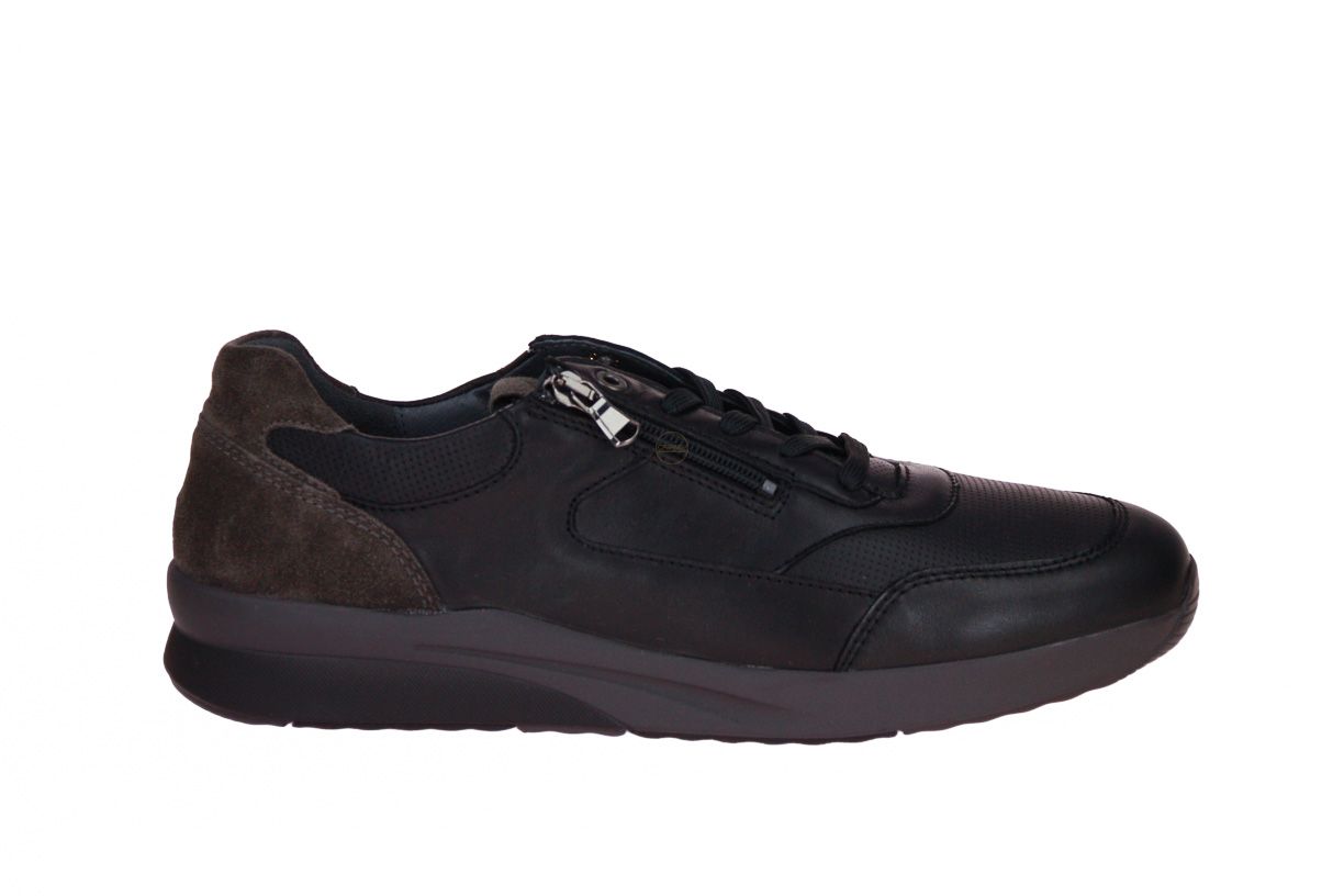 Zwart lederen herenschoen van het merk Waldläufer. De binnenzool is uitneembaar, ideaal voor steunzolen.