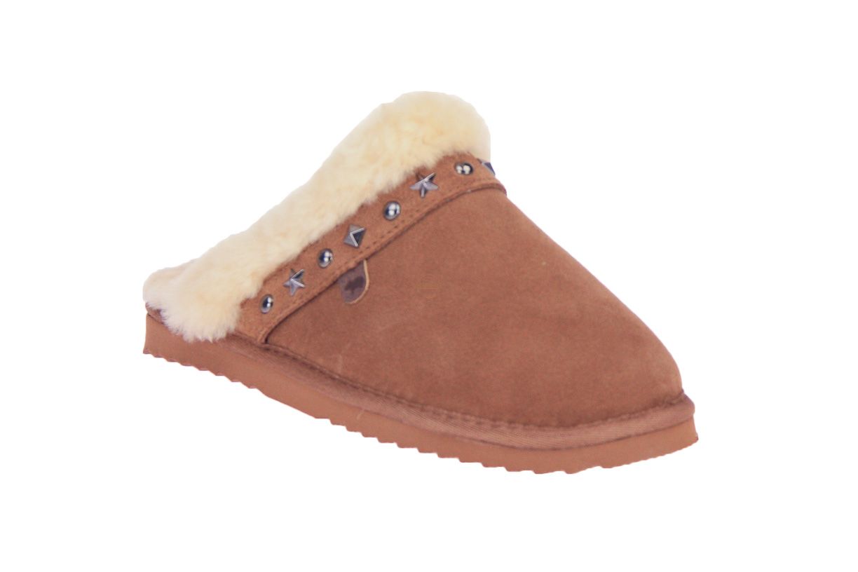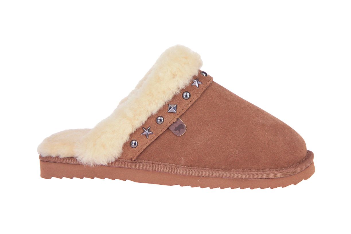 Cognac suede damespantoffel van het merk Warmbat. Bestel online - gratis levering