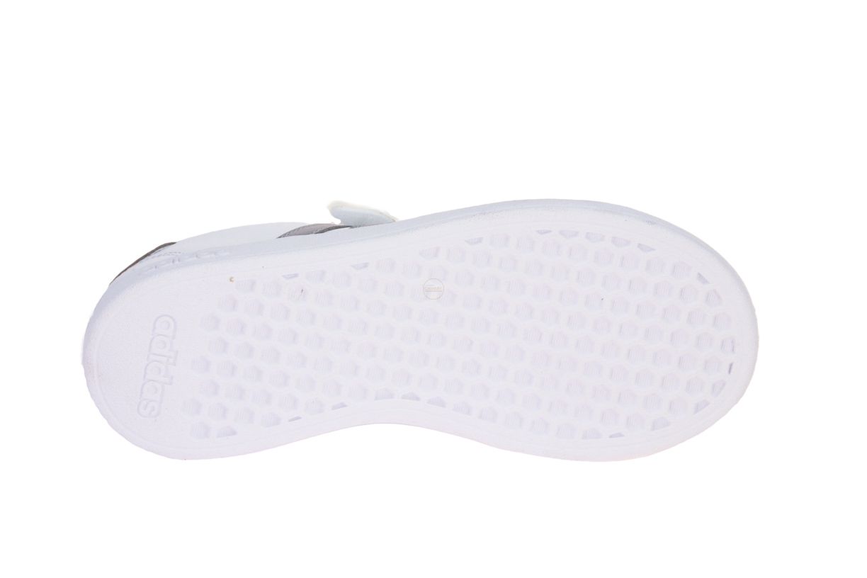 Wit synthetisch lederen sneaker met zilveren accenten van het merk Adidas.