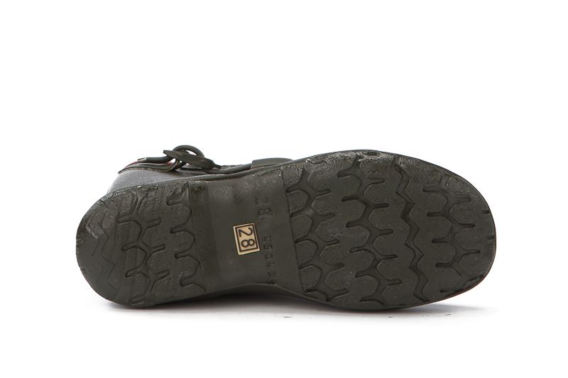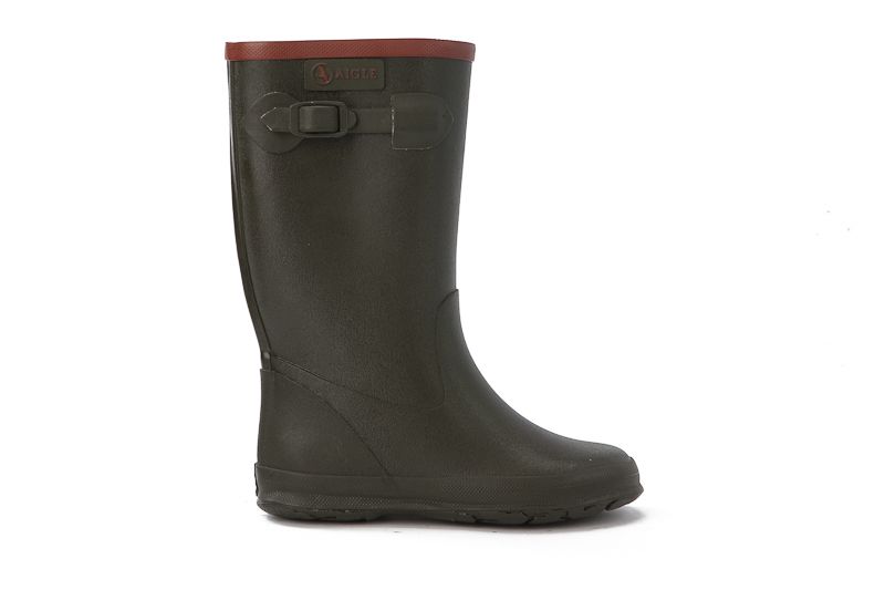 Klassieke rubberen of caoutchouc laarsjes in kakigroen met gespje bovenaan om -net als papa- uren mee rond te lopen zonder natte voeten te krijgen. Kleine prijsjes voor kleine voetjes!