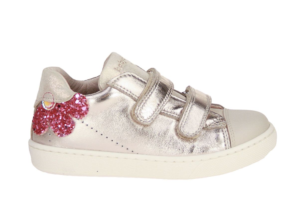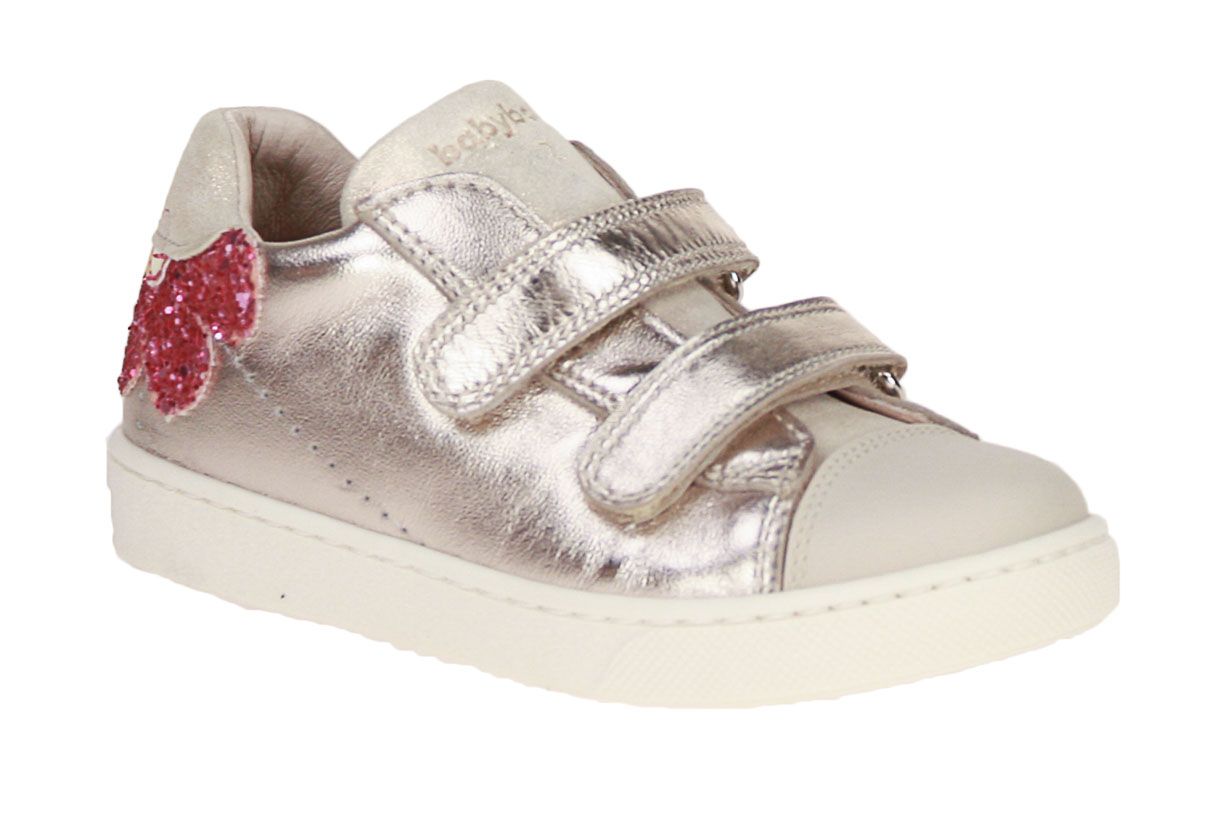 Deze goud lederen meisjesschoen is van het merk Babybotte.