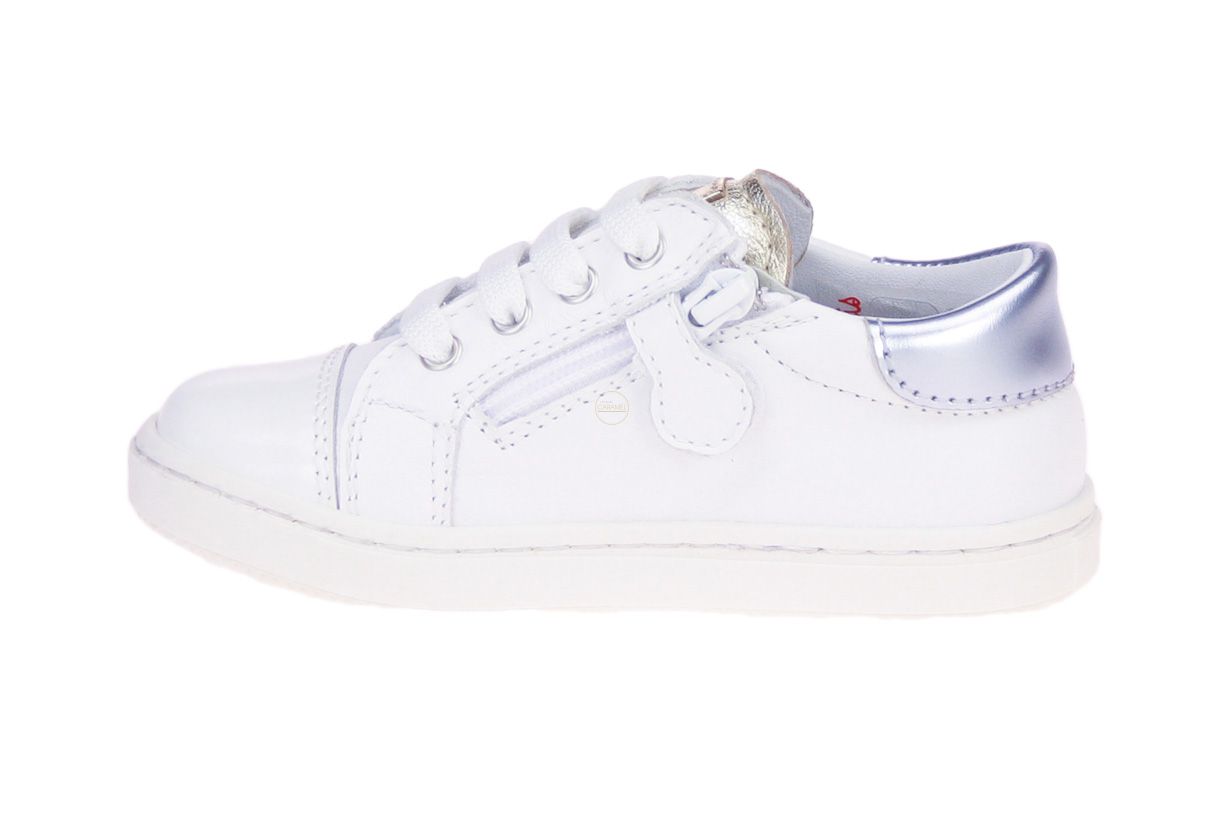 Wit lederen meisjesschoen van het merk Beberlis. De binnenzool is uitneembaar, ideaal voor steunzolen.