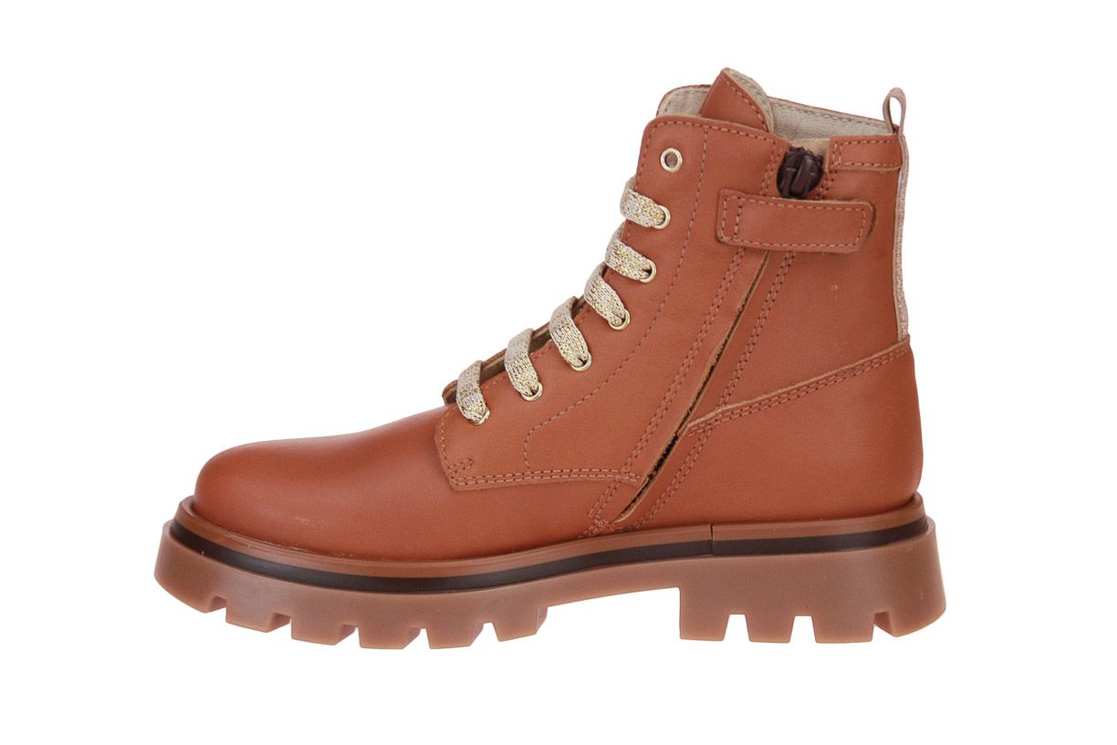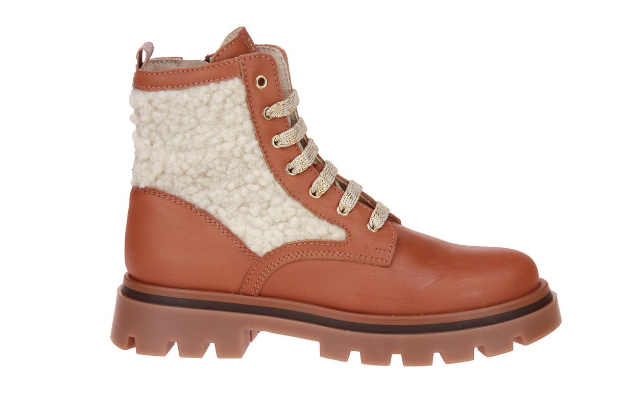 Camel lederen korte meisjeslaars met wol accent van het merk Beberlis.