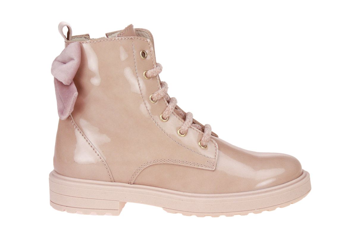 Roze laklederen meisjeslaars met strik achteraan van het merk Beberlis.