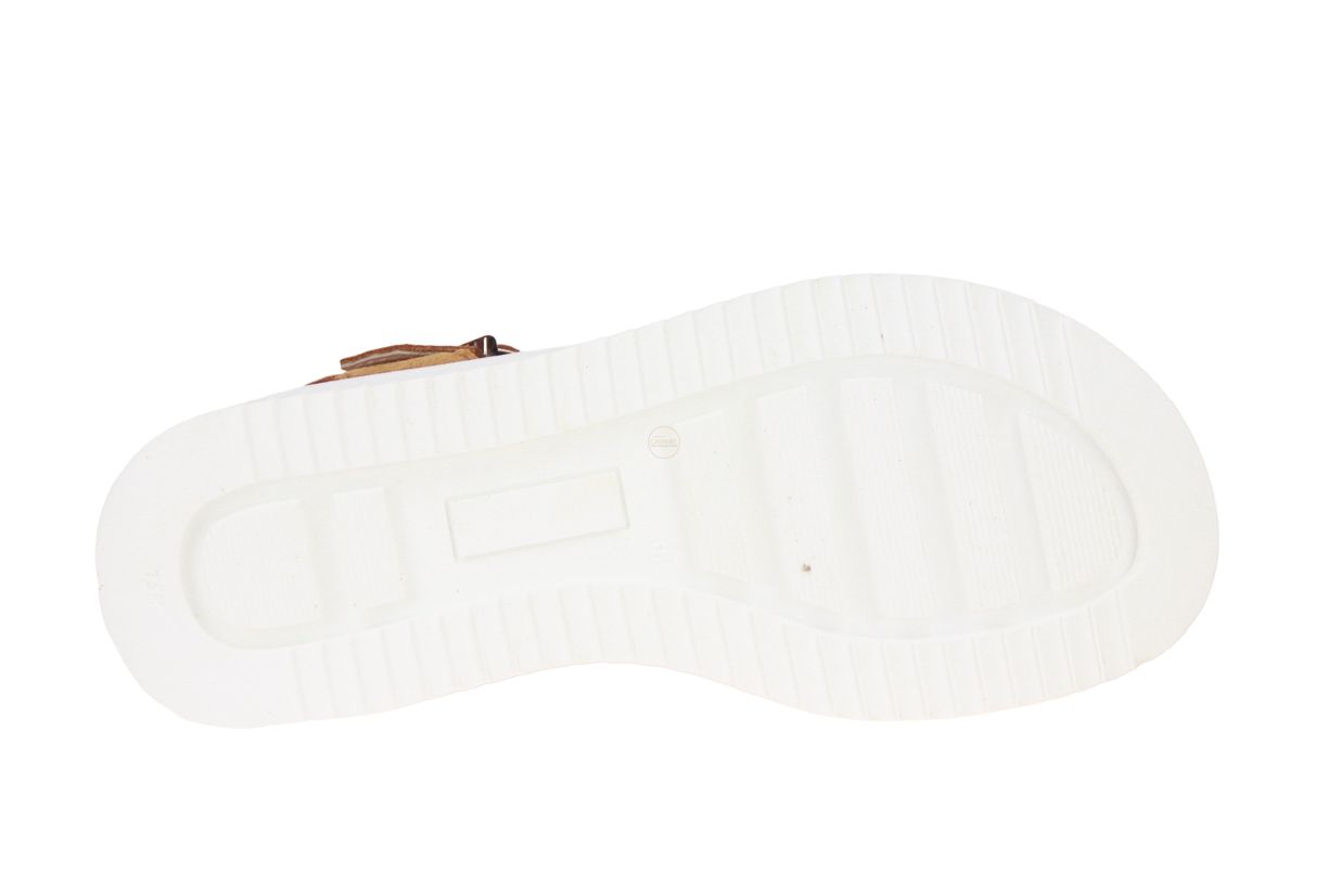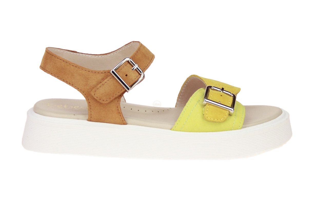 Cognac suède meisjessandaal met gele accenten van het merk Beberlis.