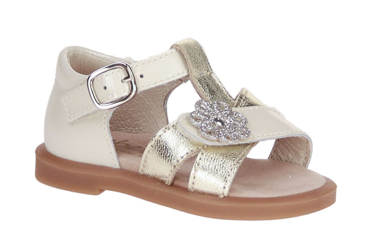 Deze beige laklederen meisjessandaal is van het merk Beberlis.