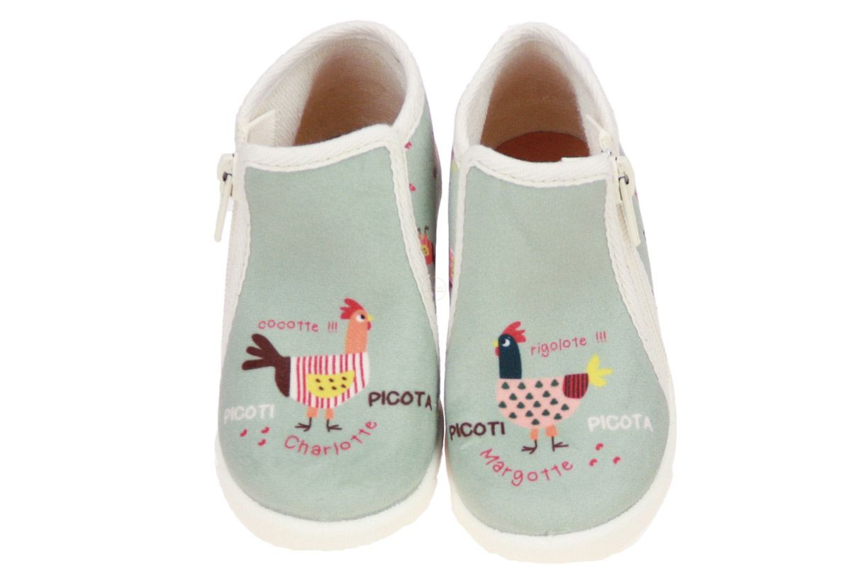 Groen textielen kinderpantoffel van het merk Bellamy.