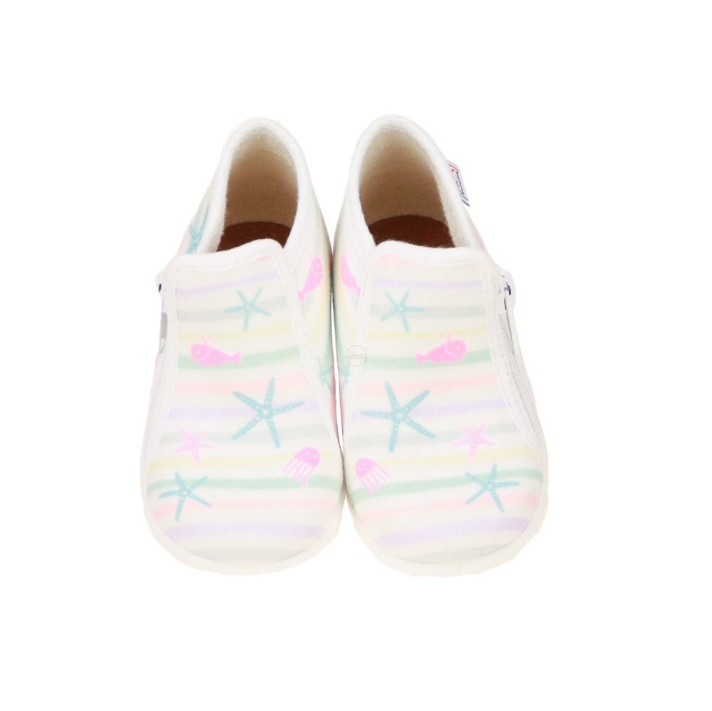 Wit textielen meisjespantoffel van het merk Bellamy.