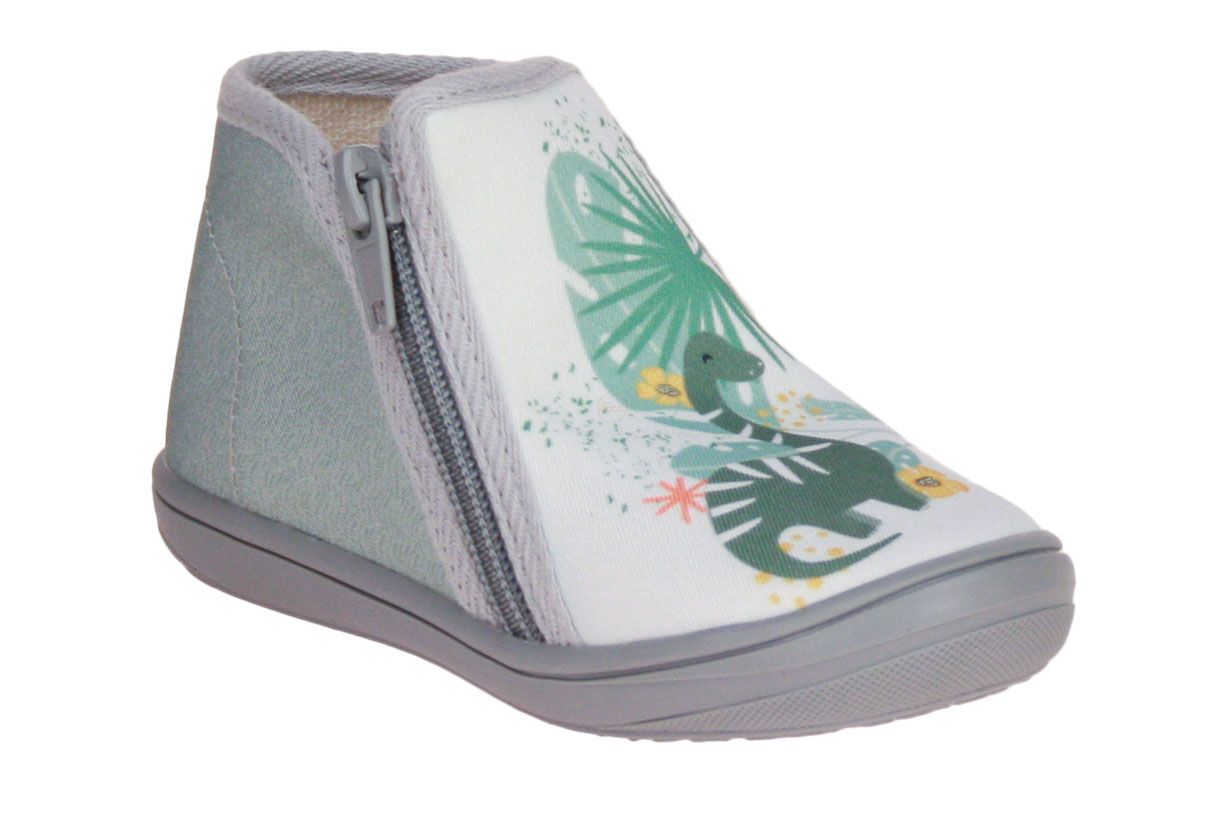 Deze textiel groene kinderpantoffel is van het merk Bellamy.