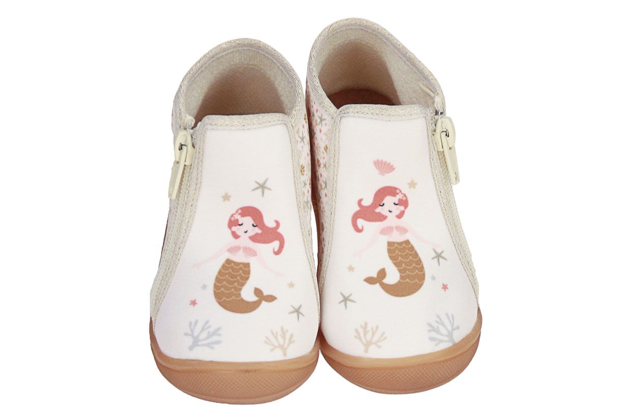 Deze textielen meisjespantoffel is van het merk Bellamy.