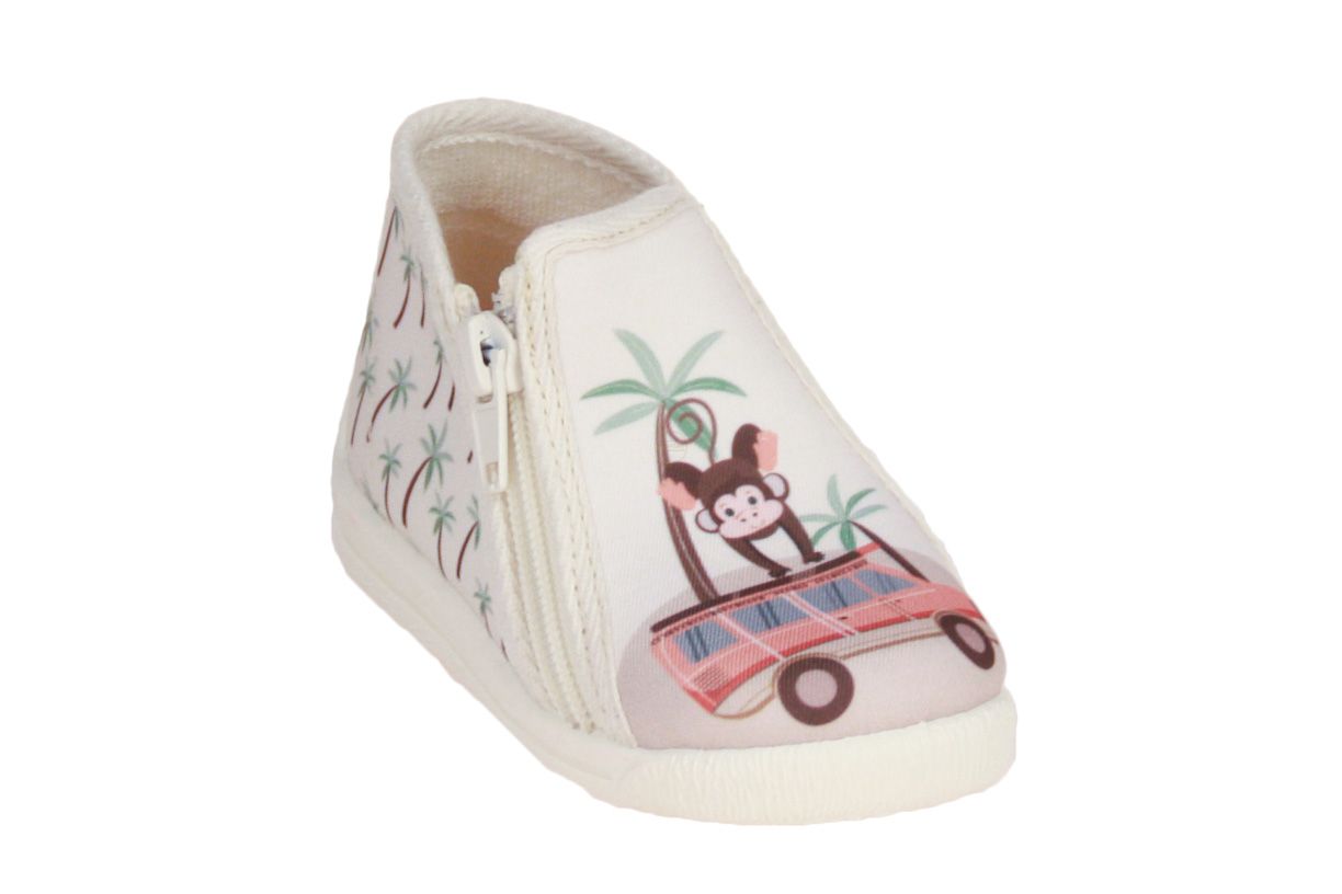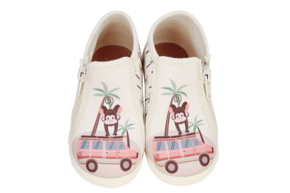 Deze beige textielen kinderpantoffel is van het merk Bellamy.