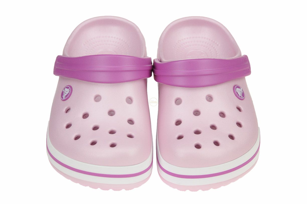 Roze rubberen meisjesslipper van het merk Crocs.