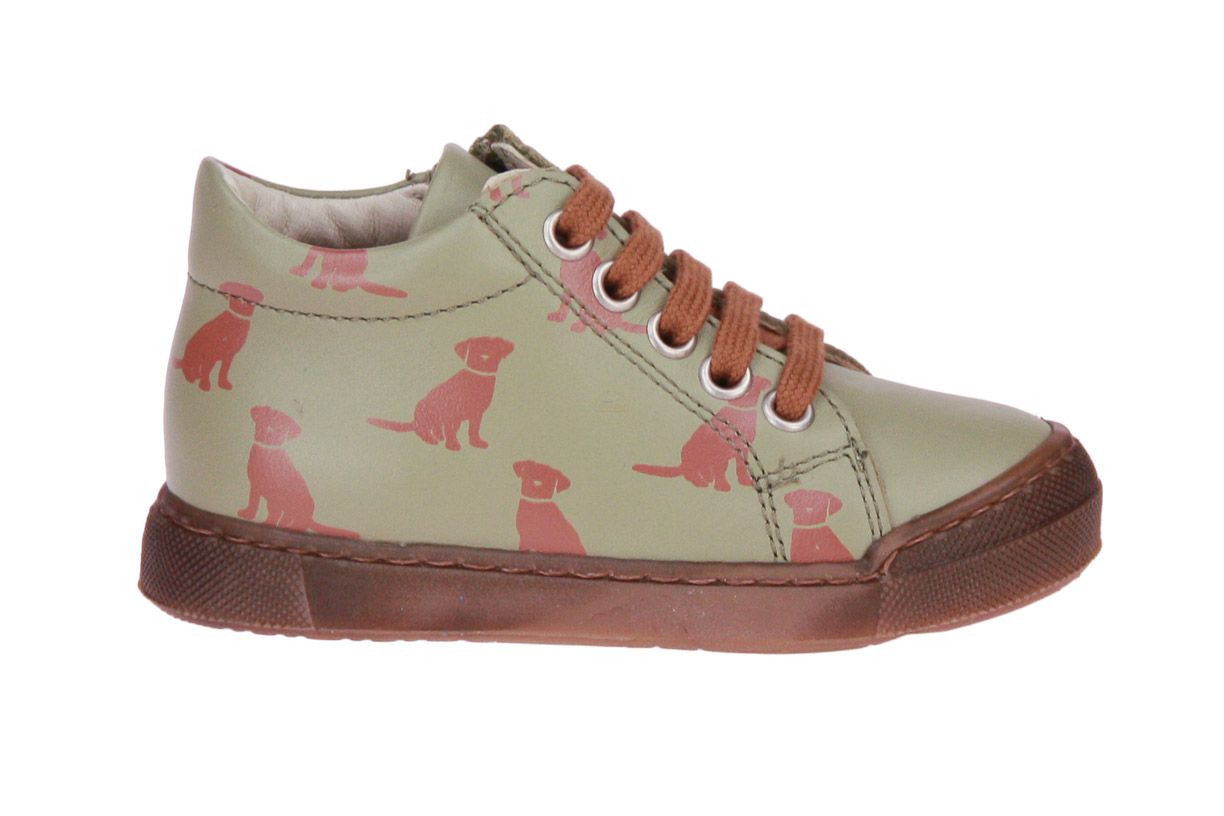 Groen lederen jongensschoen van het merk Falcotto. Je kan het schoentje gemakkelijk aan- en uittrekken met de ritssluiting.