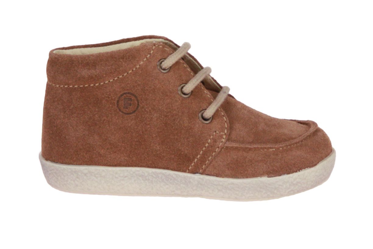 Bruin suède jongensschoen van het merk Falcotto. Dit schoentje is ideaal om te leren stappen. De binnenzool is uitneembaar.