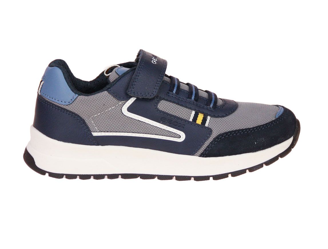 Blauw textielen jongensschoen met synthetisch lederen accenten van het merk Geox.