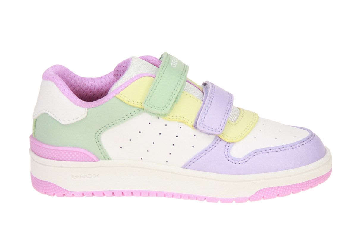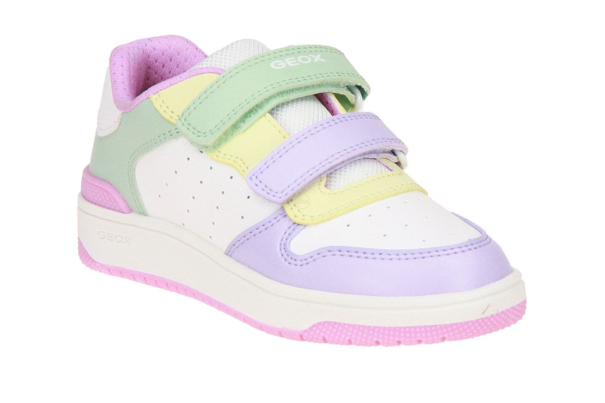 Wit synthetisch lederen snekaer met verschillende kleur accenten van het merk Geox.