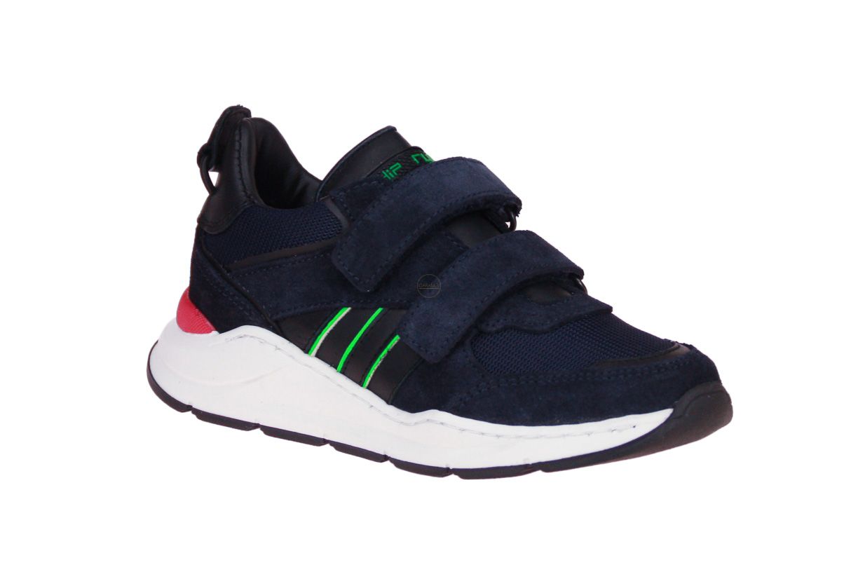 Blauw suède jongensschoen van het merk Hip. De binnenzool is uitneembaar, ideaal voor steunzolen.