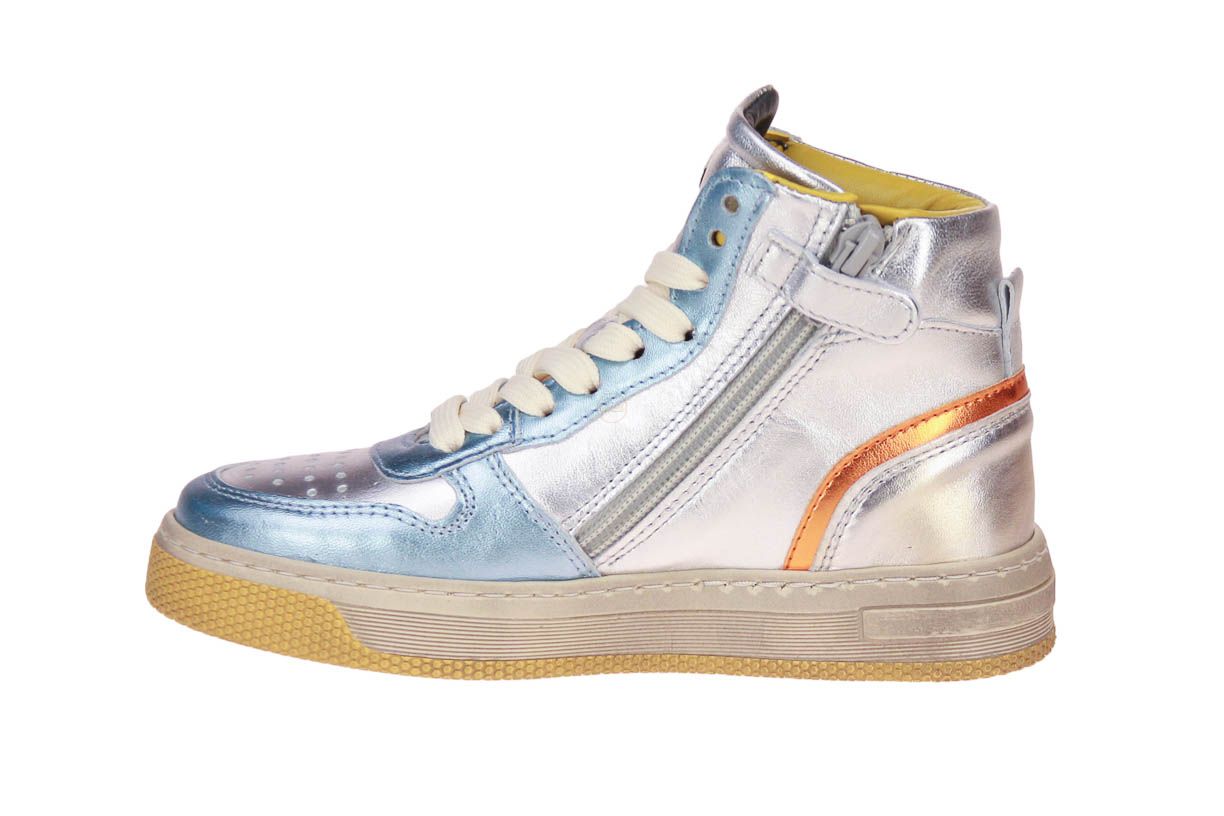Zilver lederen hoge meisjesschoen van het merk Hip. De binnenzool is uitneembaar, ideaal voor steunzolen.
