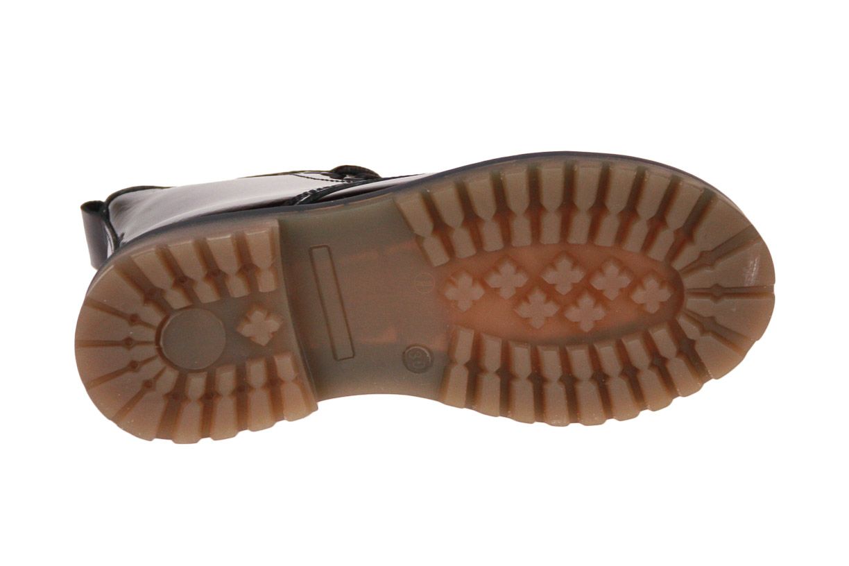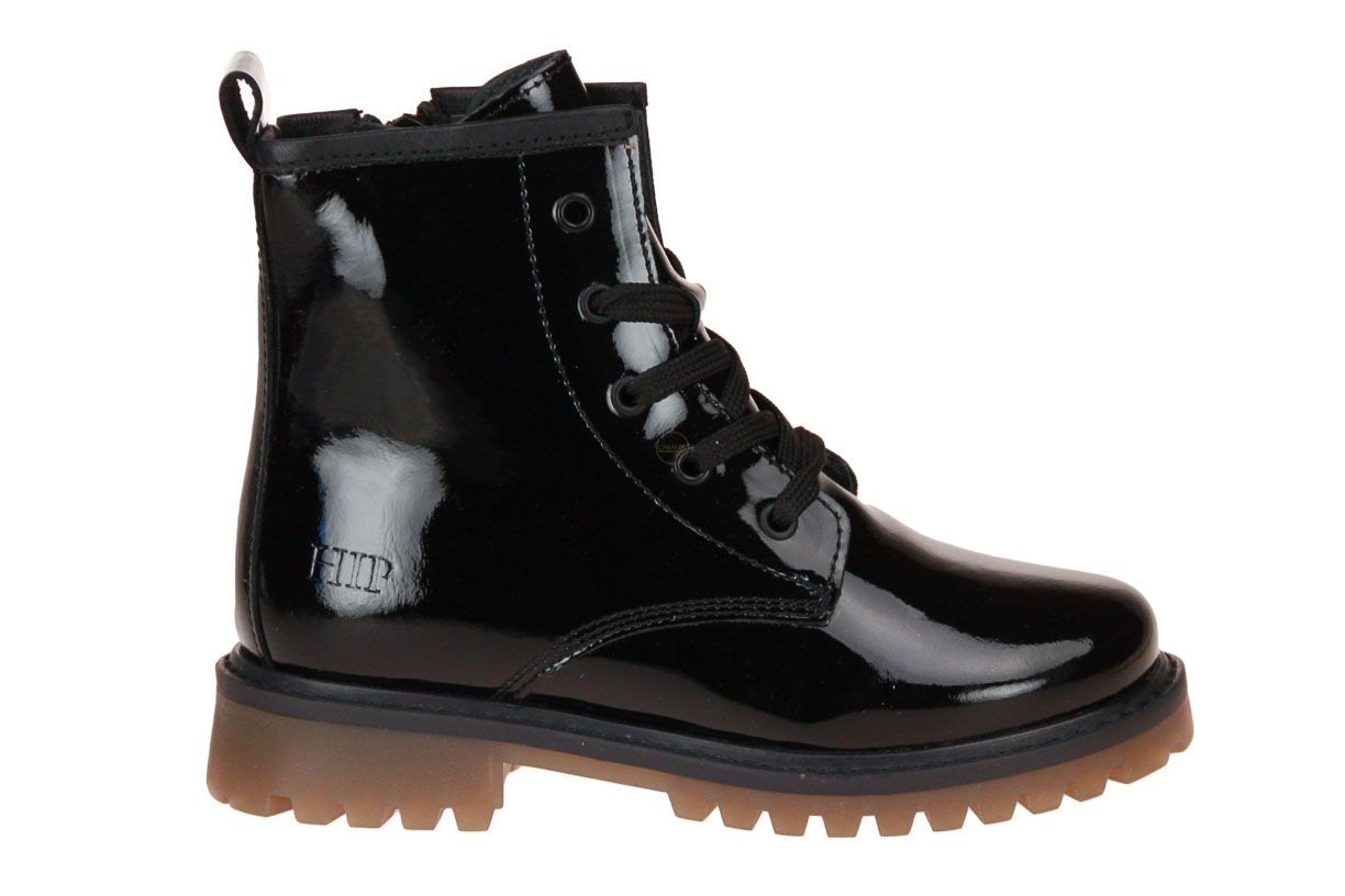 Zwart laklederen korte meisjeslaars van het merk Hip. De binnenzool is uitneembaar, ideaal voor steunzolen.
