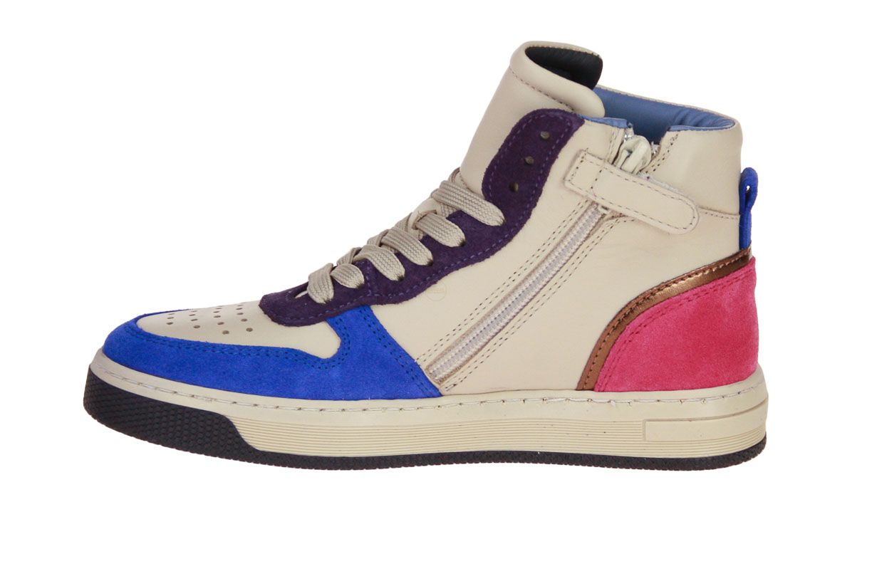 Beige lederen hoge meisjesschoen met verschillende kleur accenten van het merk Hip. De binnenzool is uitneembaar, ideaal voor steunzolen.