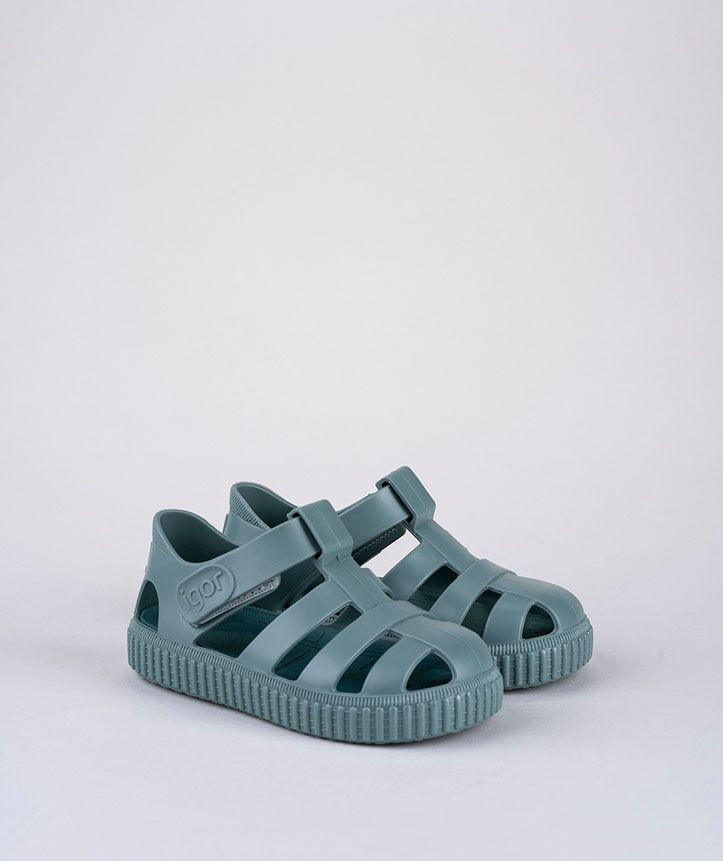 Blauw rubberen sandaal van het merk Igor.Tailleert groot, best een maatje kleiner nemen.