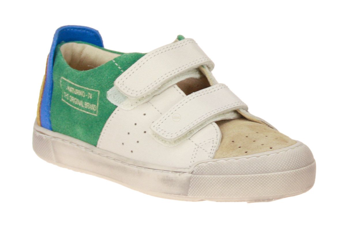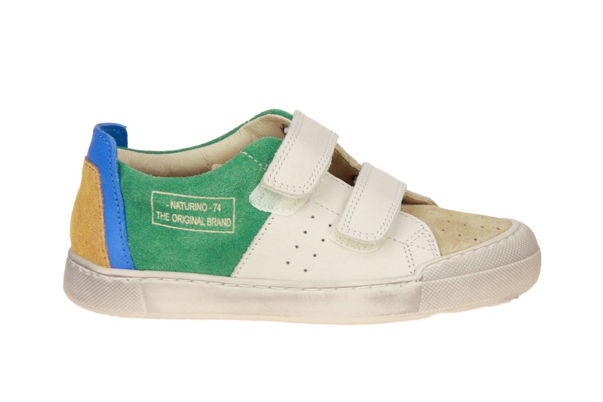 Beige lederen jongensschoen met verschillende kleur accenten in het suède. De binnenzool is uitneembaar, ideaal voor steunzolen. Deze schoen is van het merk Naturino.