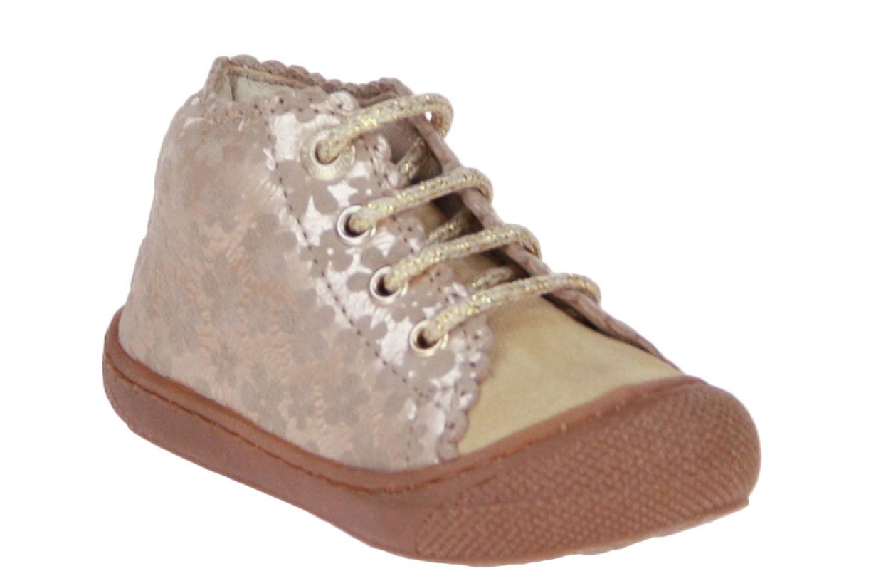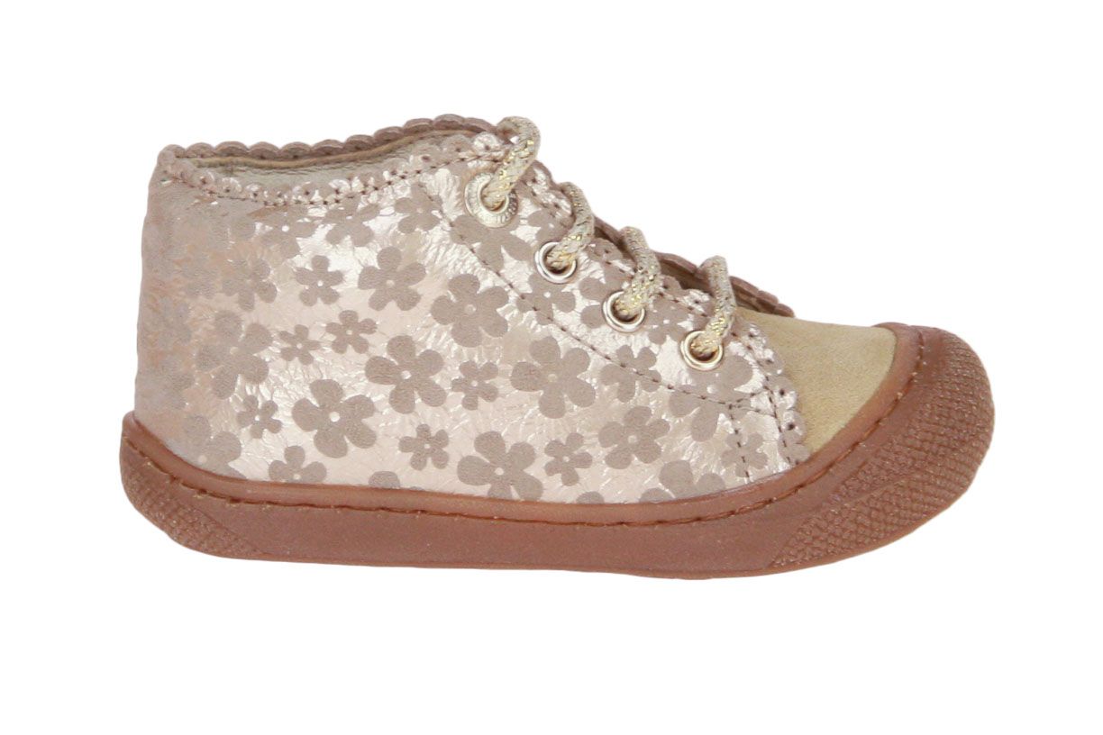 Goud metallic lederen meisjesschoen met beige accenten. Dit schoentje is ideaal om te leren stappen. De binnenzool is uitneembaar.