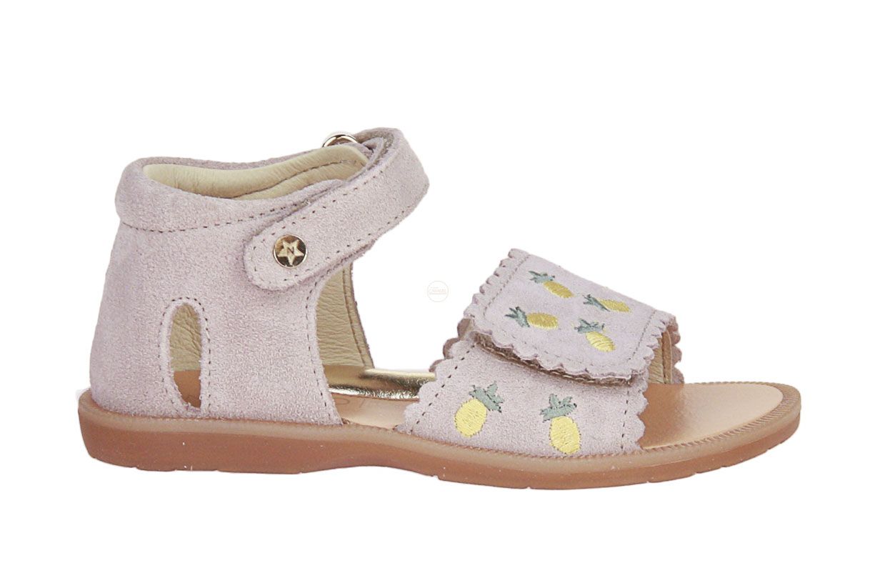Deze roze suède meisjessandaal is van het merk Naturino.