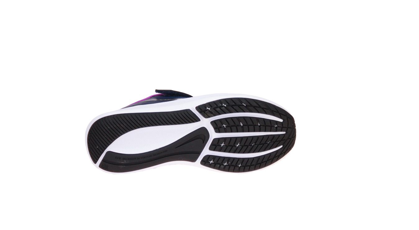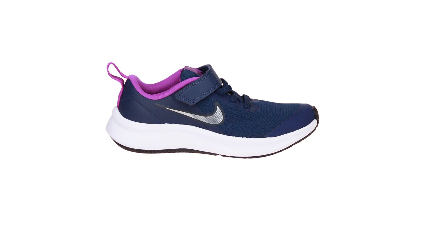 Blauw textielen sportschoen met paarse accenten van het merk Nike.