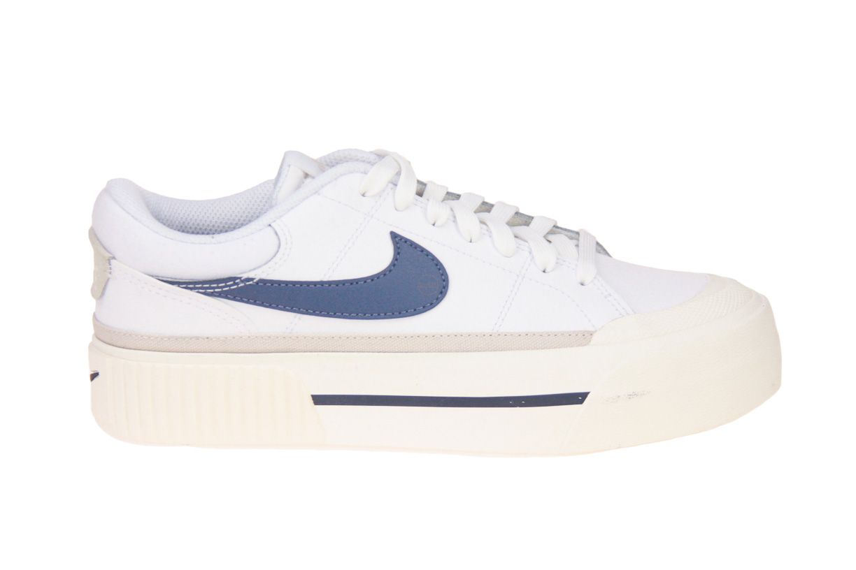 Wit synthetisch lederen sneaker met blauwe accenten van het merk Nike.
