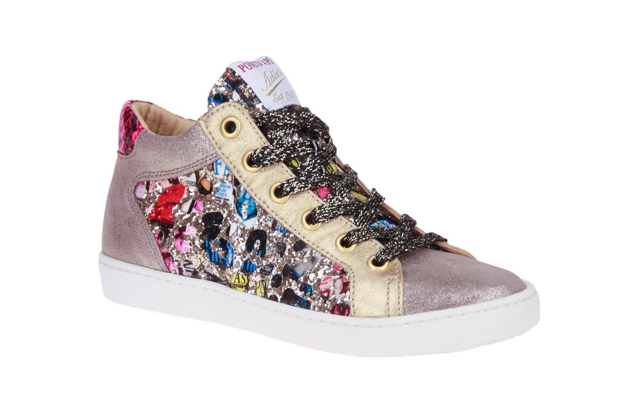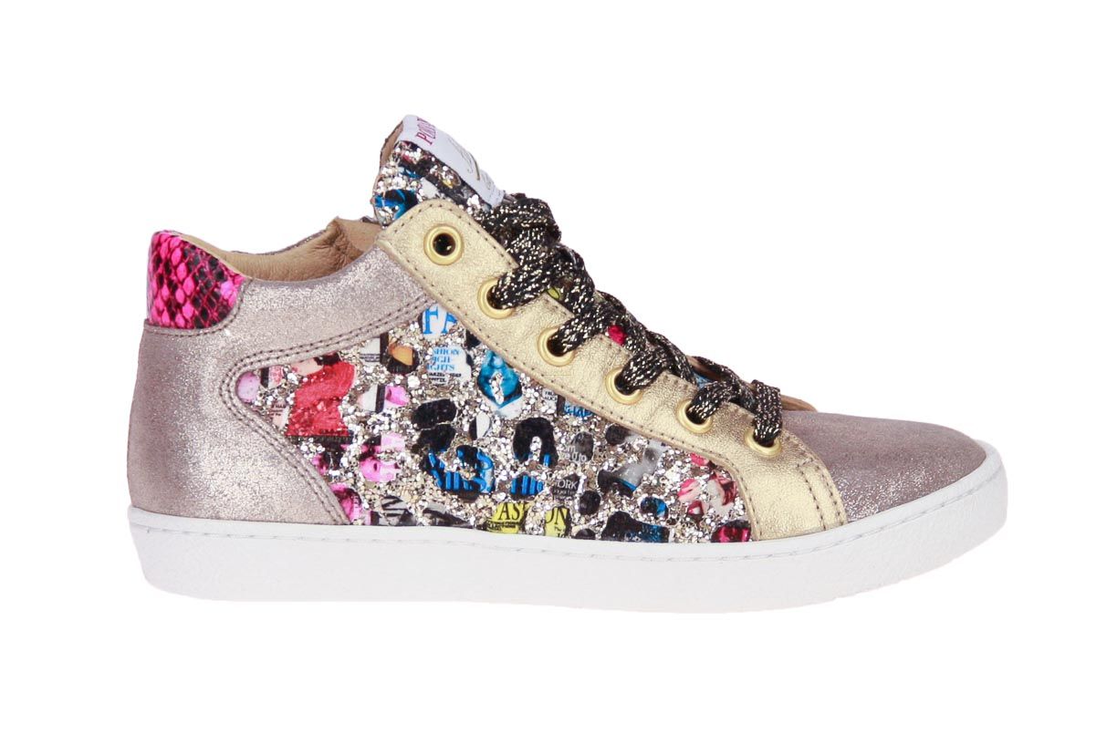 Goud suède metallic meisjesschoen van het merk Pom d'Api. De binnenzool is uitneembaar, ideaal voor steunzolen.