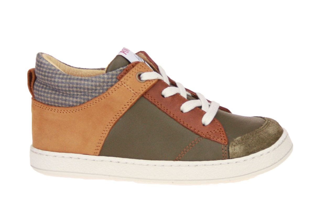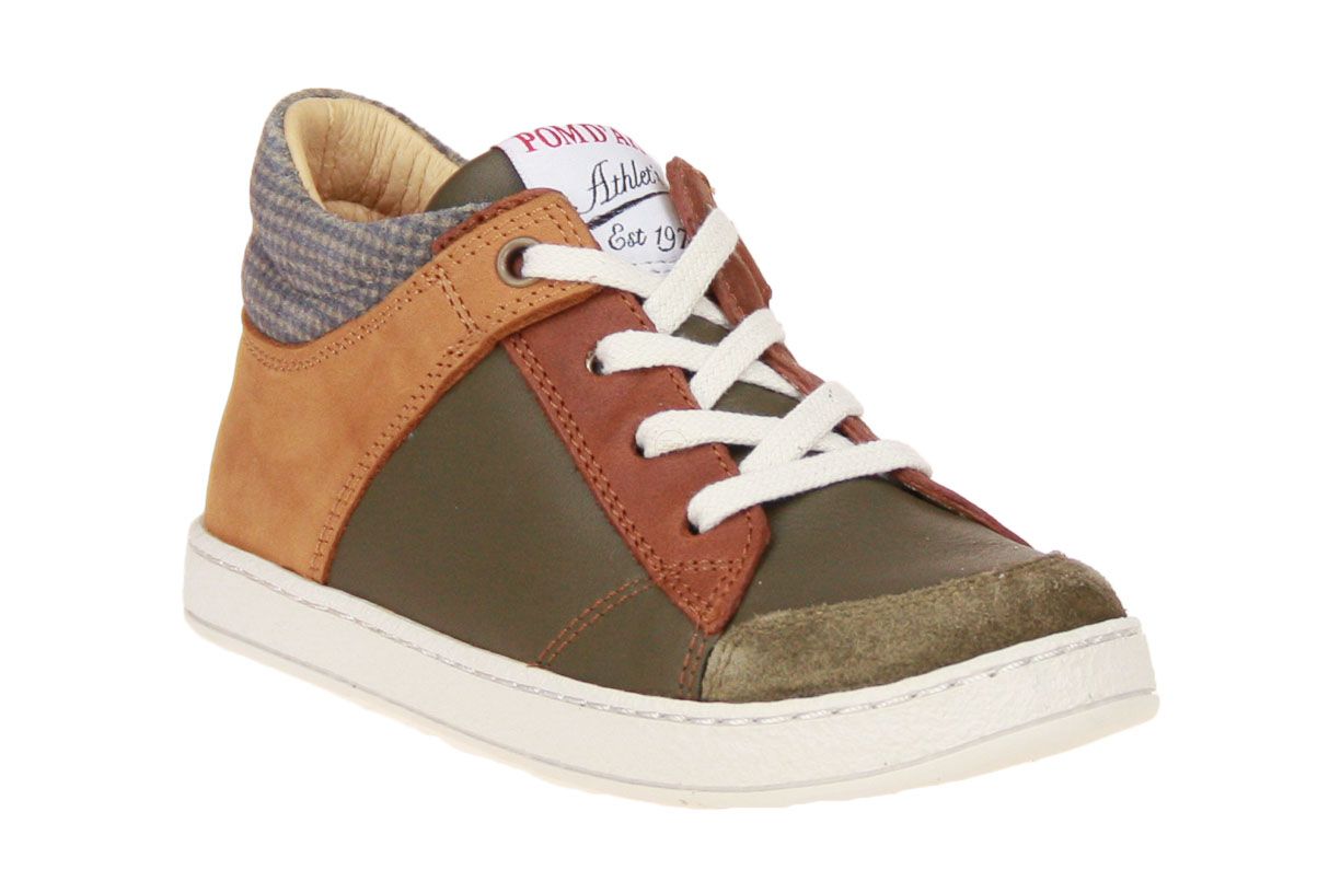 Groen lederen jogensschoen van het merk Pom d'Api. De binnenzool is uitneembaar, ideaal voor steunzolen.