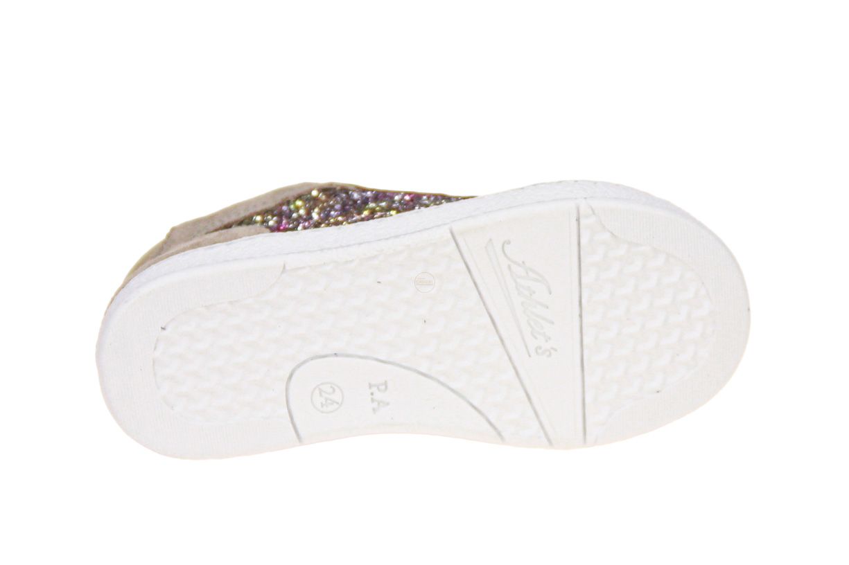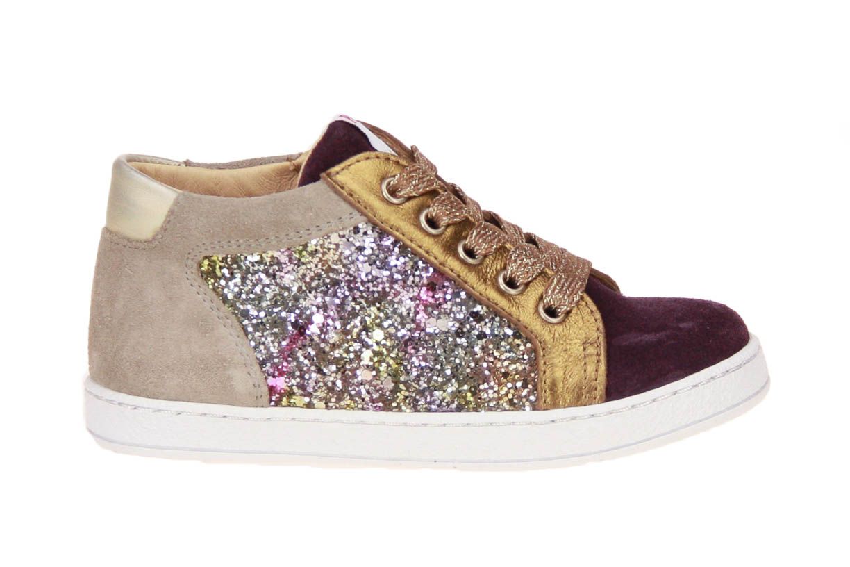 Brons suède meisjesschoen met glitters van het merk Pom d'Api. De binnenzool is uitneembaar, ideaal voor steunzolen.