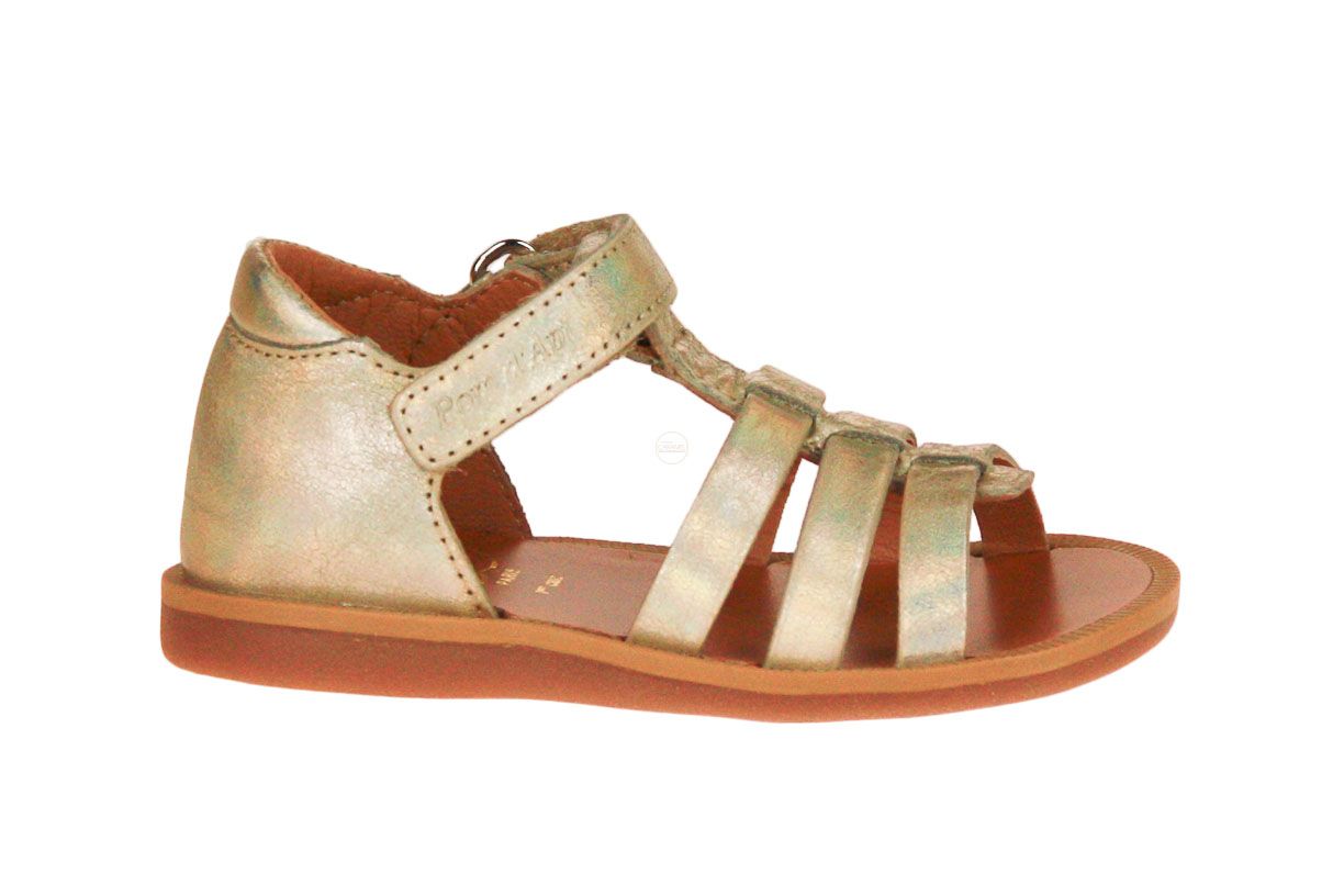 Goud lederen meisjessandaal van het merk Pom d'Api.
