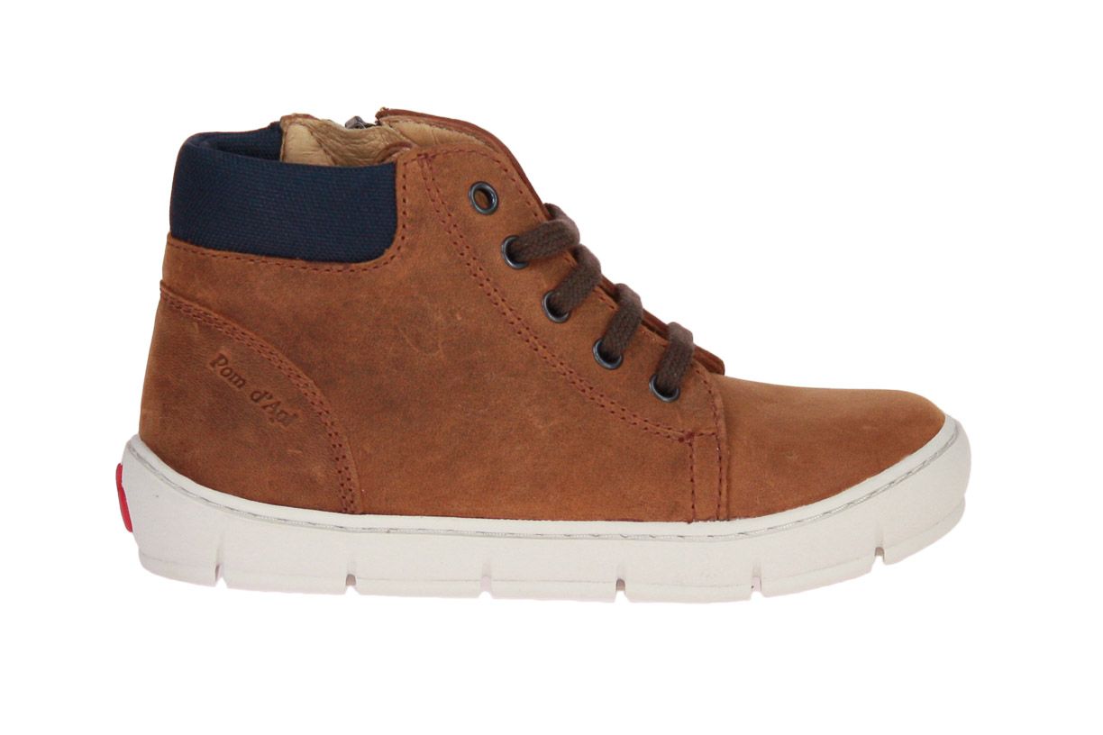 Cognac lederen jongensschoen van het merk Pom d'Api. De binnenzool is uitneembaar, ideaal voor steunzolen.