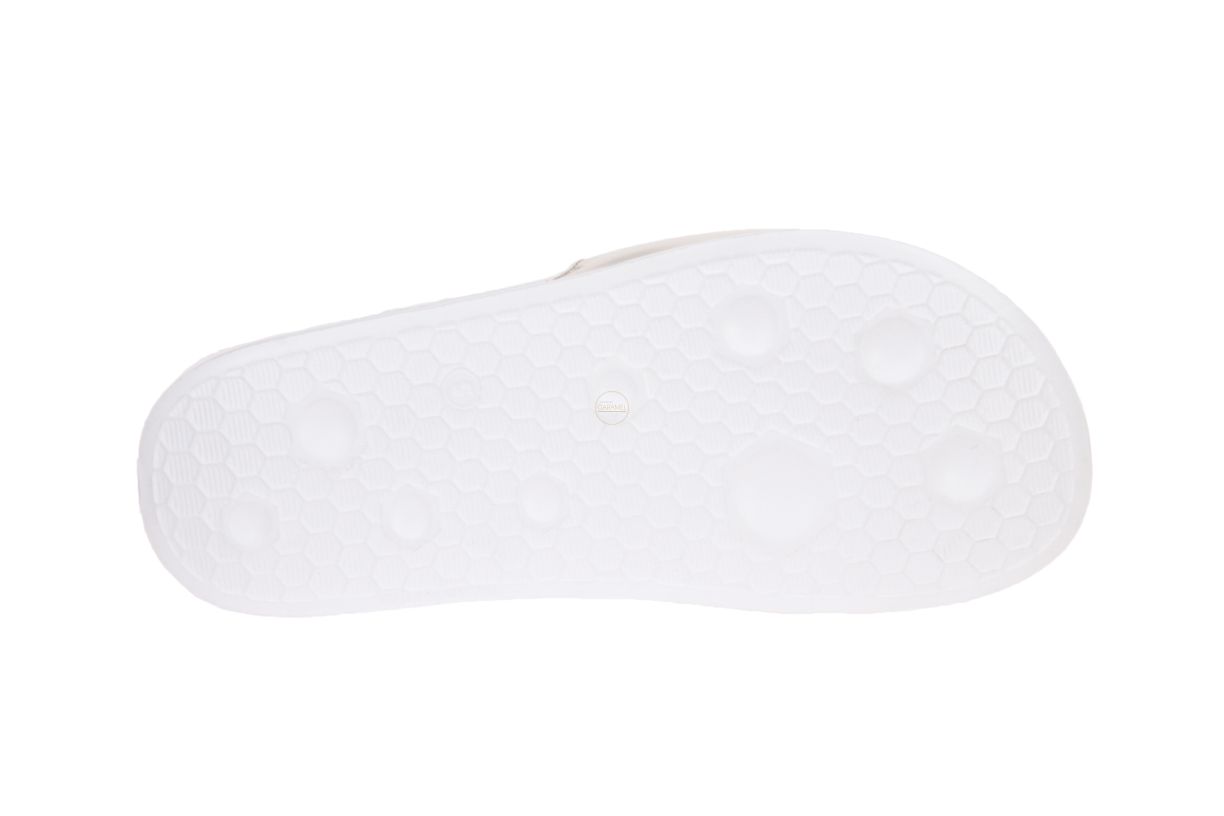 Wit metallic rubberen damesslipper van het merk Puma.