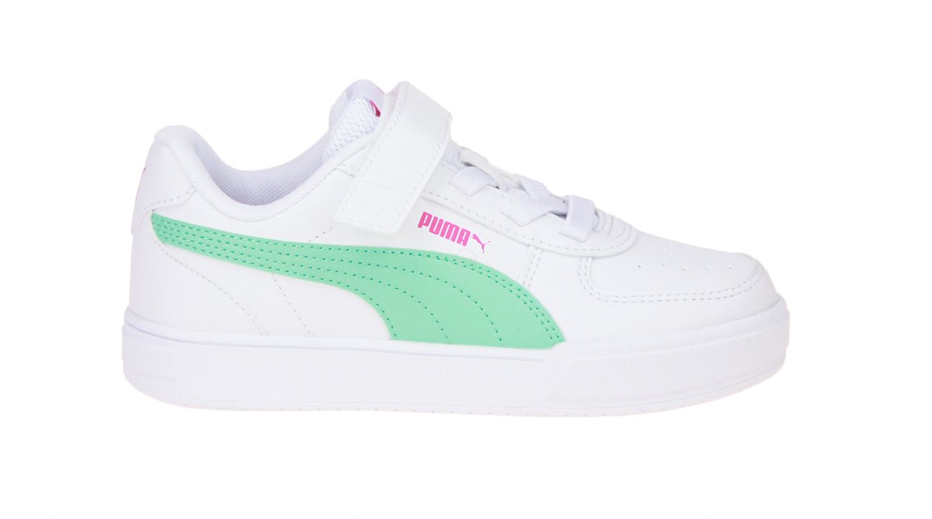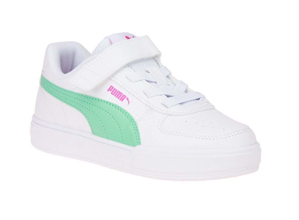 Wit synthetisch lederen sneaker met muntgroene accenten van het merk Puma.