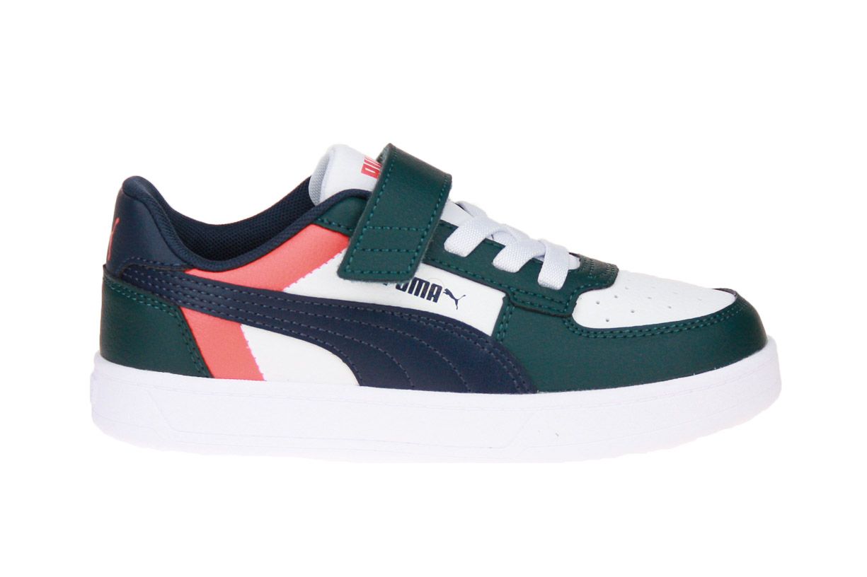 Donker groen synthetisch lederen sneaker met verschillende kleur accenten van het merk Puma.