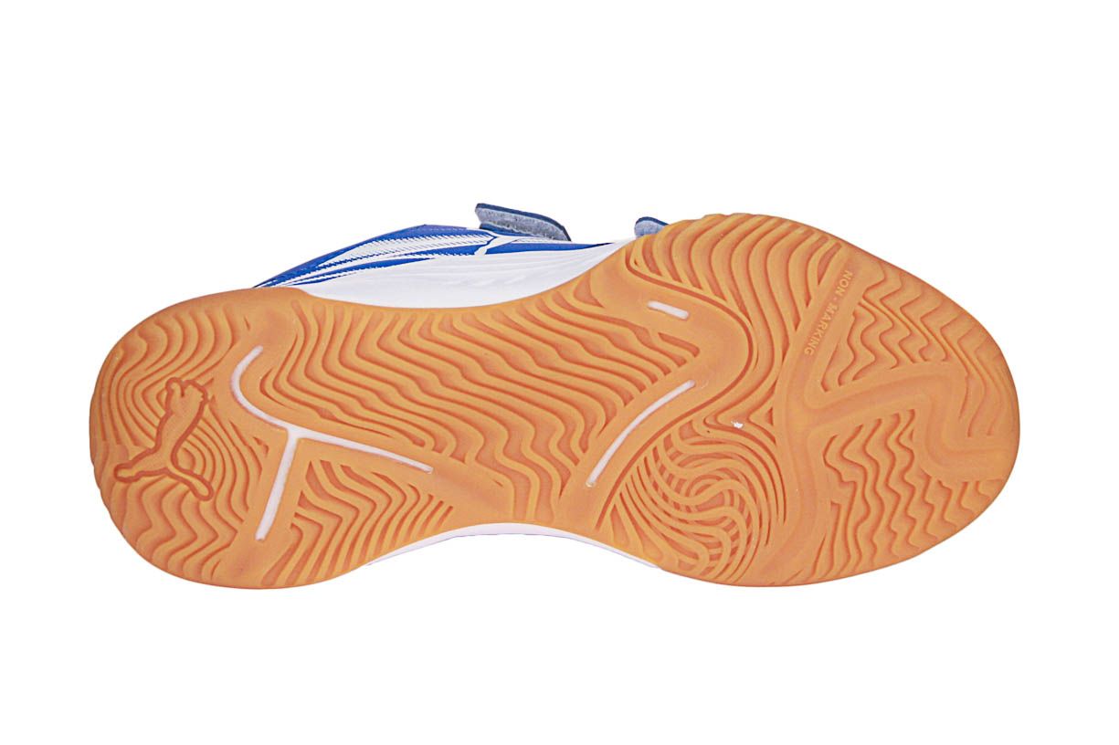 Blauw textielen sneaker met witte accenten van het merk Puma.