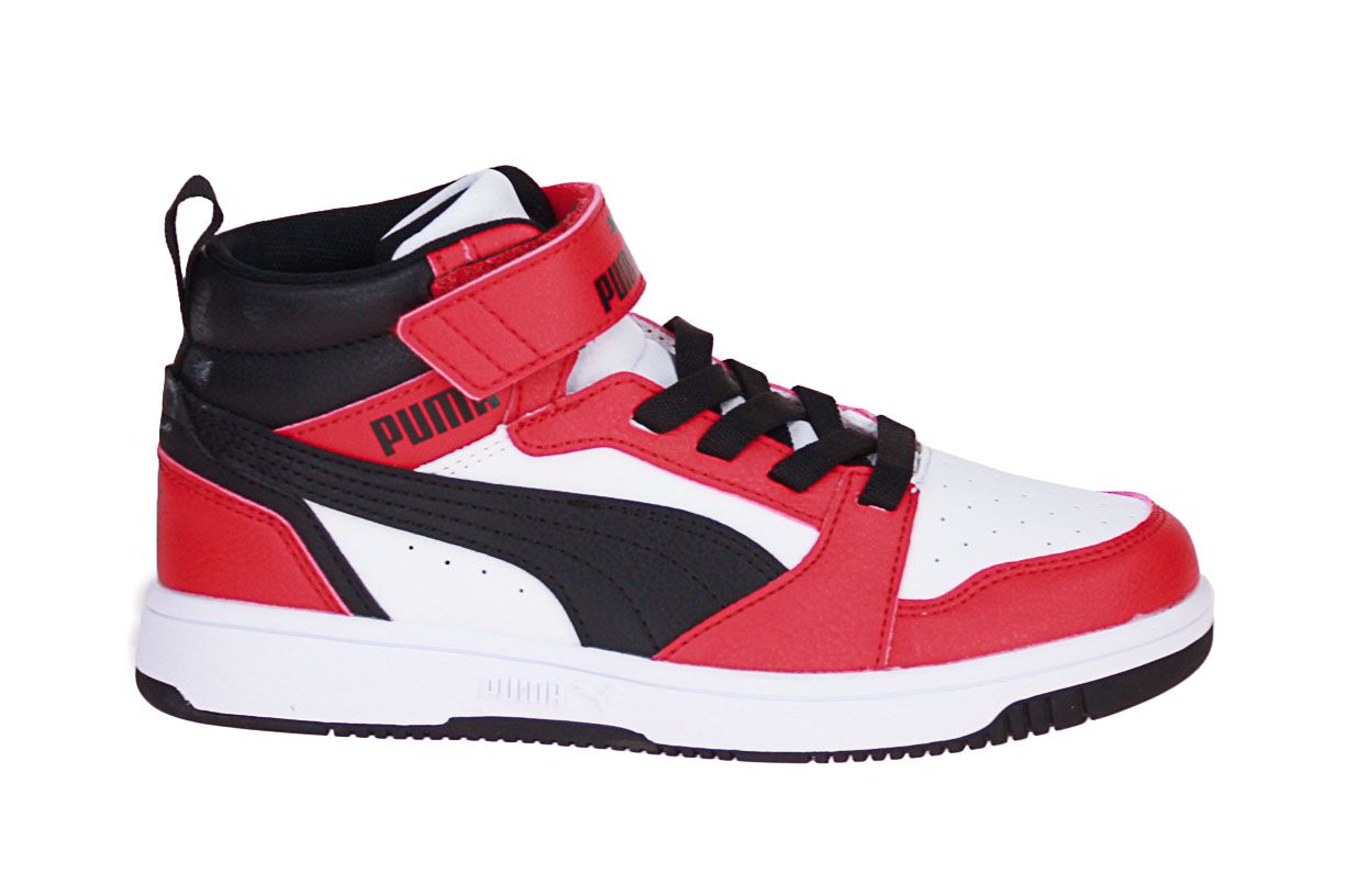 Wit synthetisch lederen sneaker met rode en zwarte accenten van het merk Puma.