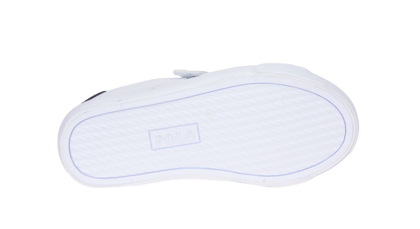 Wit lederen jongensschoen met blauwe accenten van het merk Ralph Lauren Polo.