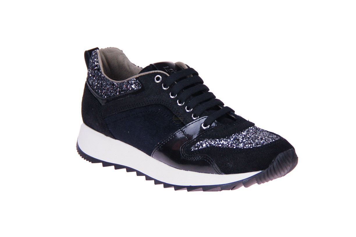 Zwart suede meisjesschoen van het merk Romagnoli. De binnenzool is uitneembaar, ideaal voor steunzolen. Bestel online - gratis levering