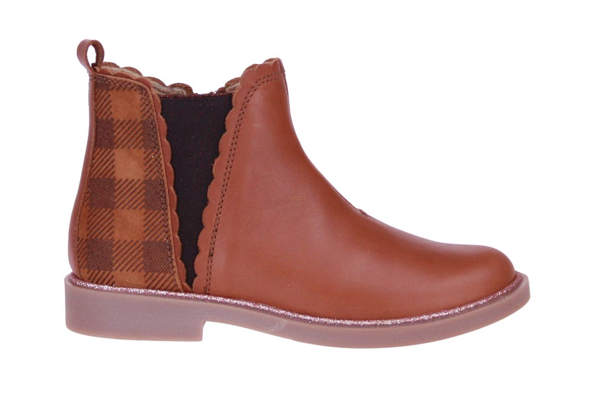 Cognac kort lederen meisjeslaars van het merk Romagnoli.