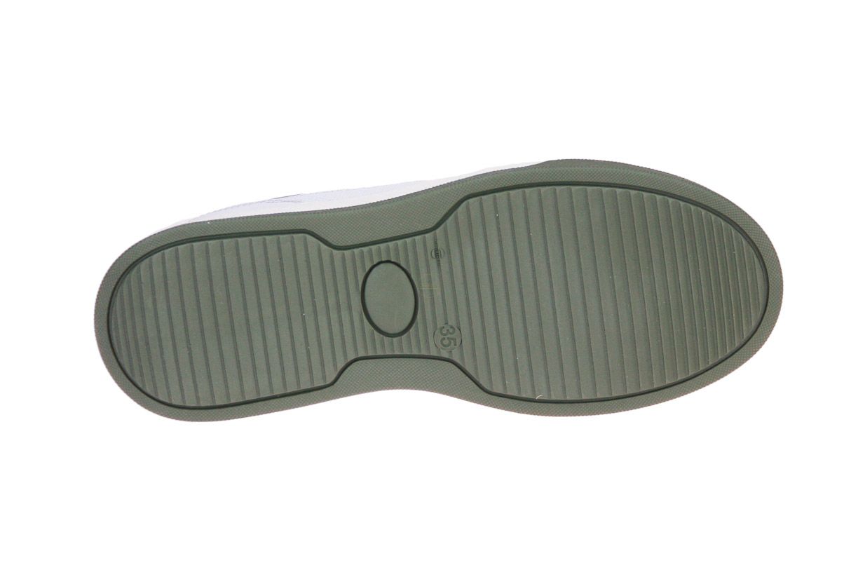 Wit lederen jongensschoen met groene accenten van het merk Romagnoli. De binnenzool is uitneembaar, ideaal voor steunzolen.