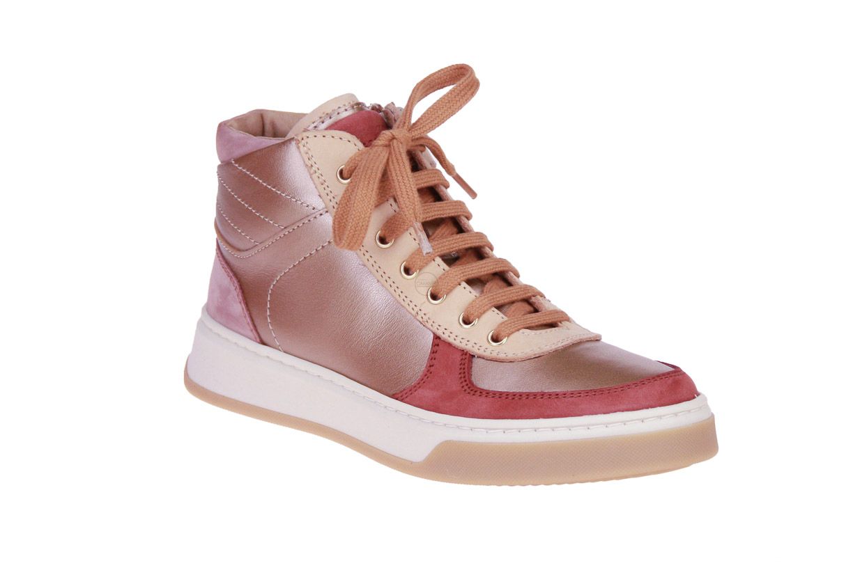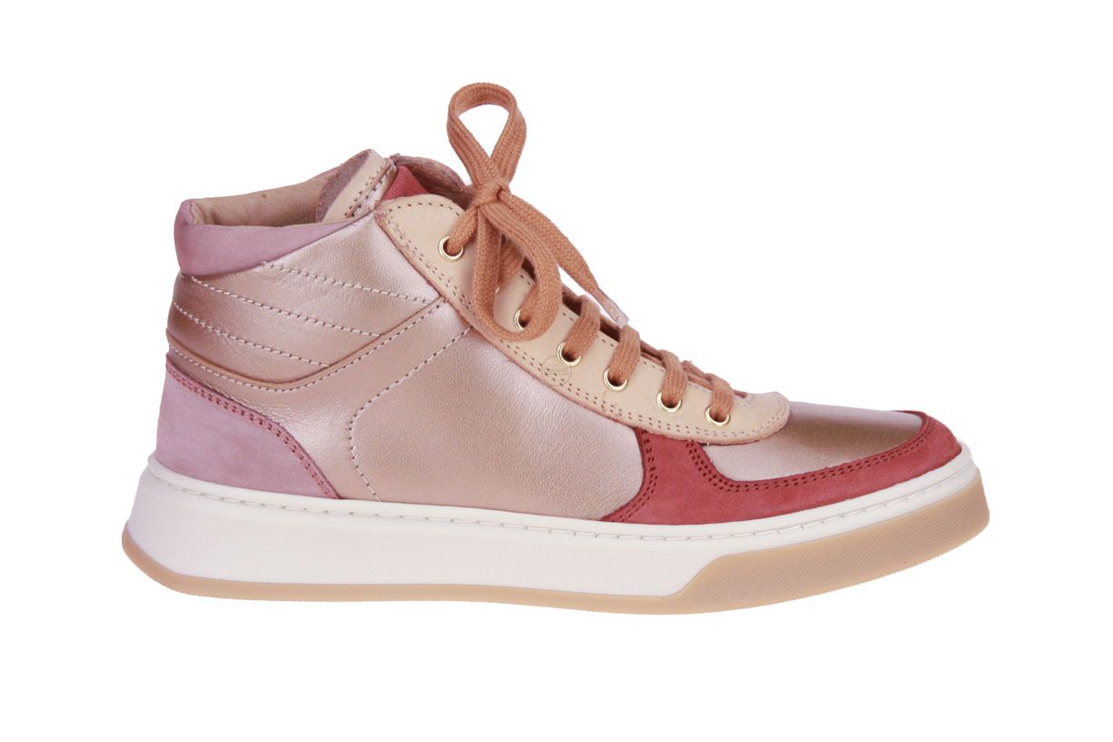 Roze metallic lederen meisjesschoen van het merk Romagnoli. De binnenzool is uitneembaar, ideaal voor steunzolen.