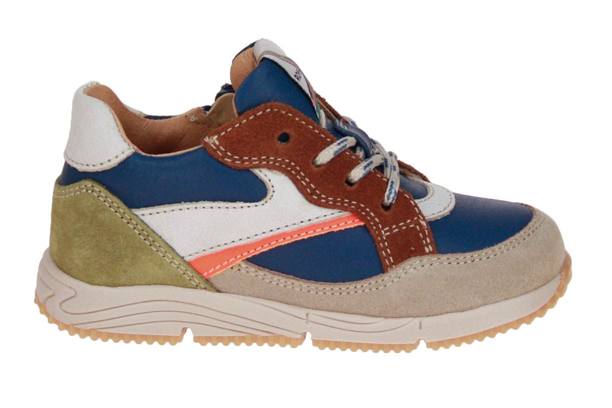 Deze blauw lederen jongensschoen is van het merk Romagnoli. De sneaker is afgewert met verschillende kleur accenten. De binnenzool is uitneembaar, ideaal voor steunzolen.