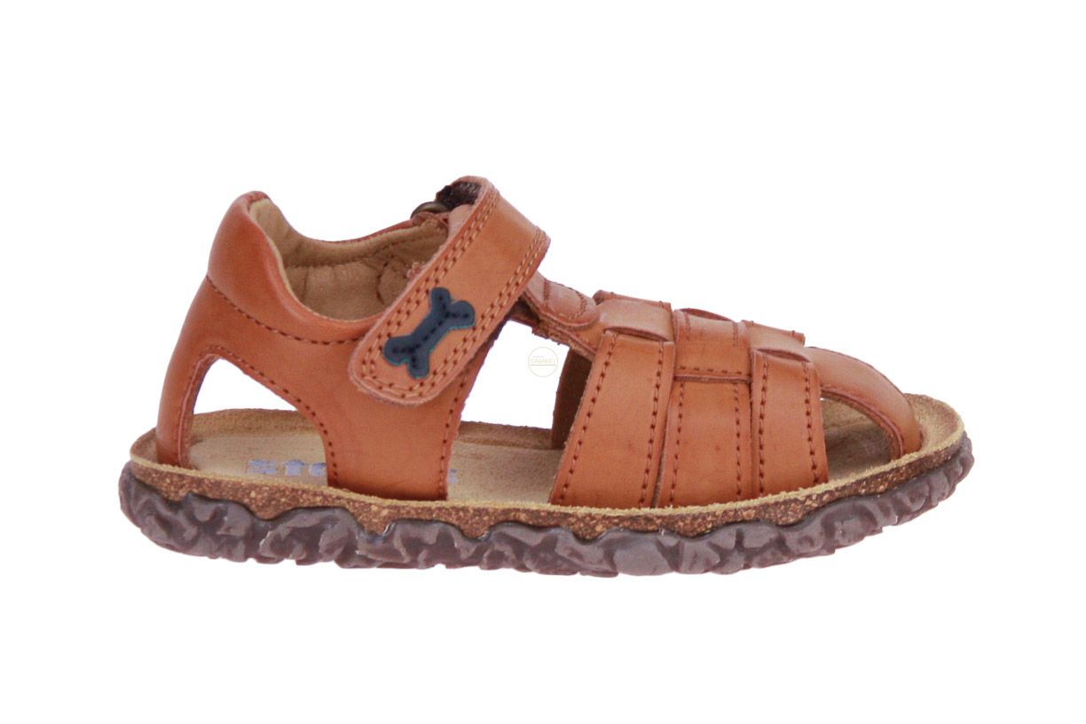 Cognac lederen gesloten jongenssandaal van het merk Stones and Bones.